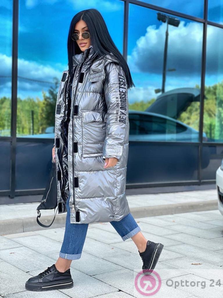 Пальто зимнее женское молодежного стиля цвет серебро оптом