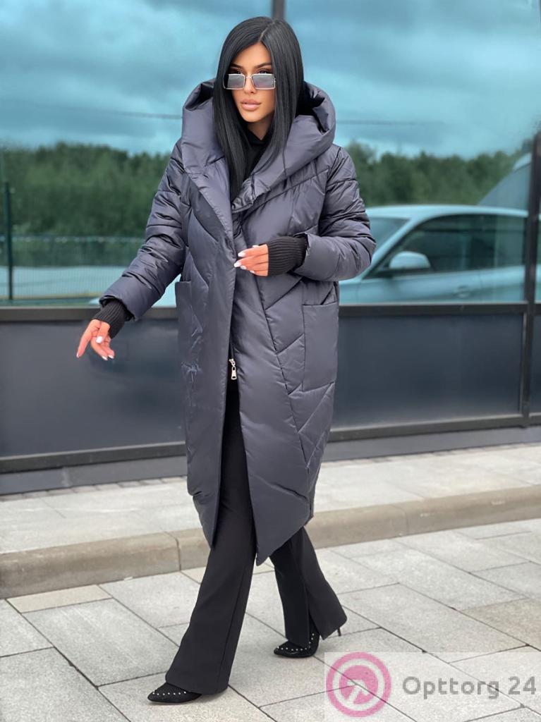 Пальто зимнее женское оригинальное цвет мокрый асфальт оптом