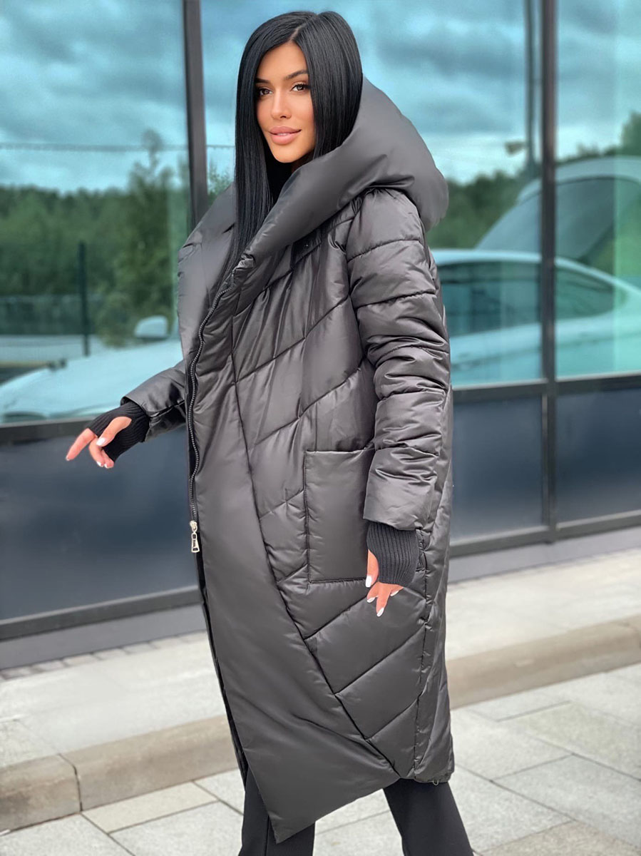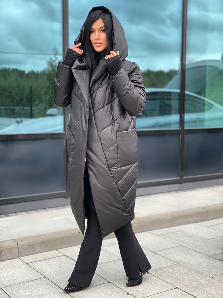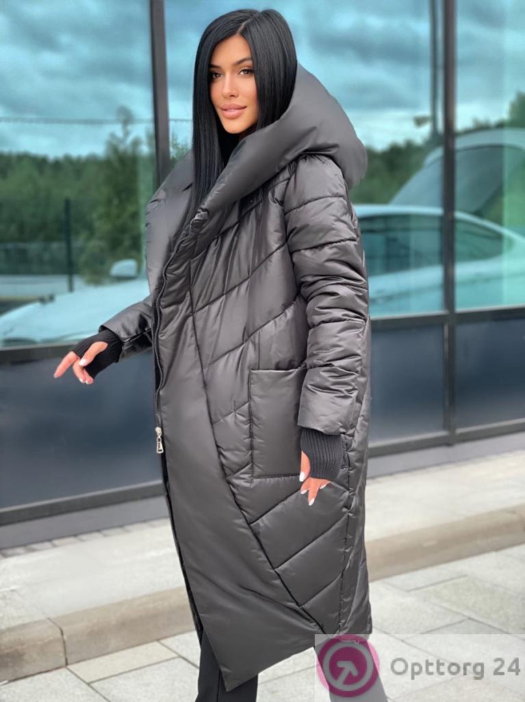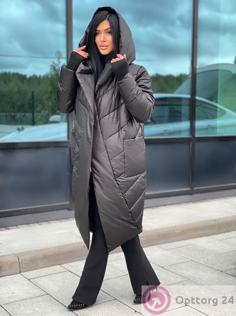 Пальто зимнее женское оригинальное цвет темно-серый оптом