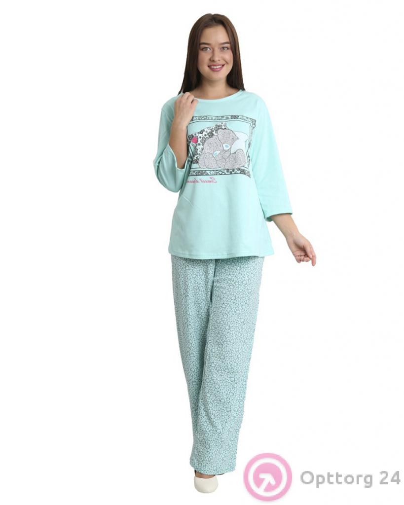 Пижама женская кофта и брюки с рисунком тедди оптом