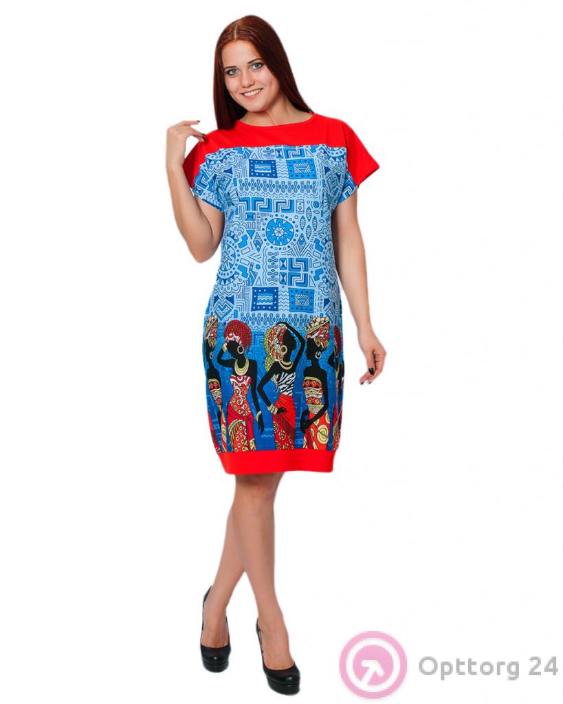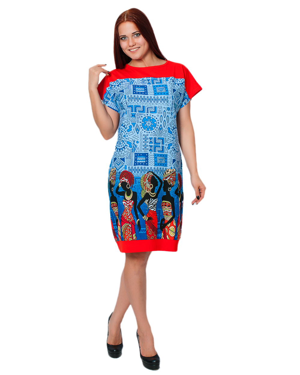 Женская пижама-туника с рисунком. Цвет сине-красный.