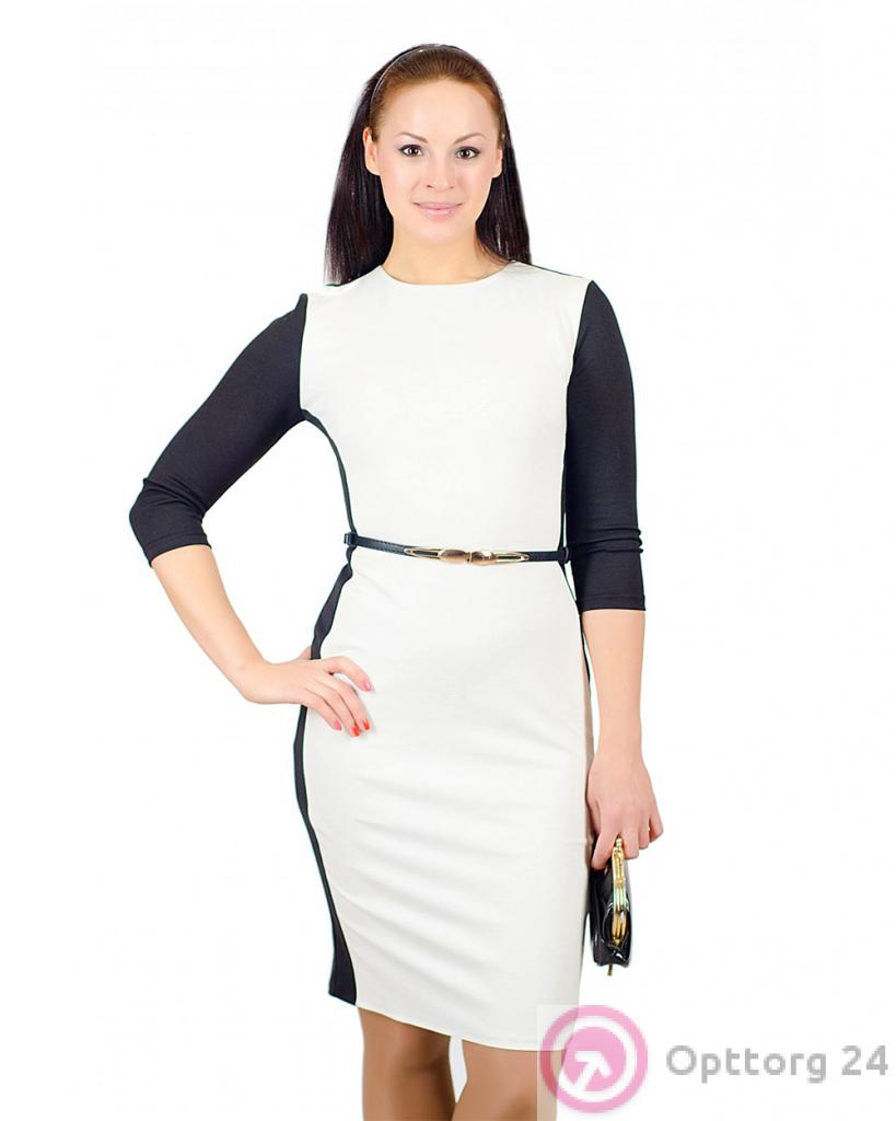 Шикарное платье в строгом офисном стиле. Чёрные вставки и рукава, а также тоненький ремешок, очень гармонично смотрятся и добавляют особый шарм в классический покрой модели.