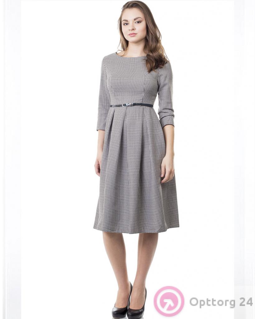 Милое двухцветное платье в мелкую клету. Хорошо смотрится как с балетками, так и с высоким каблуком.