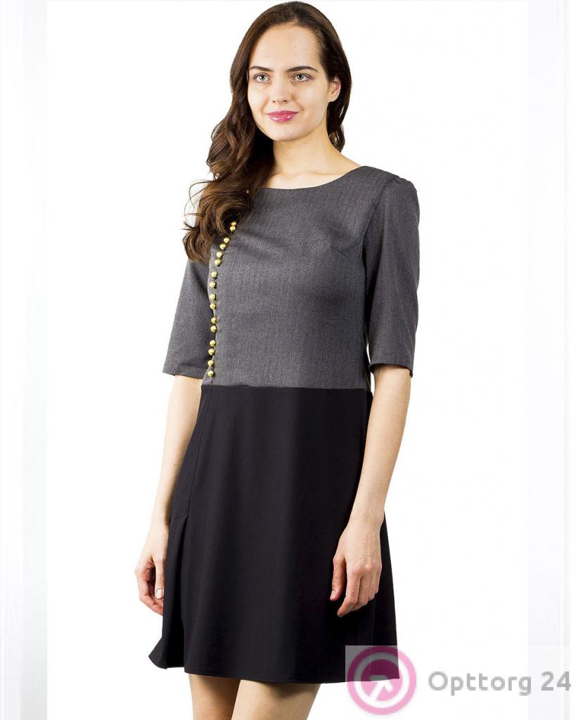 Платье черно-серого цвета с золотистыми пуговицами сбоку. оптом