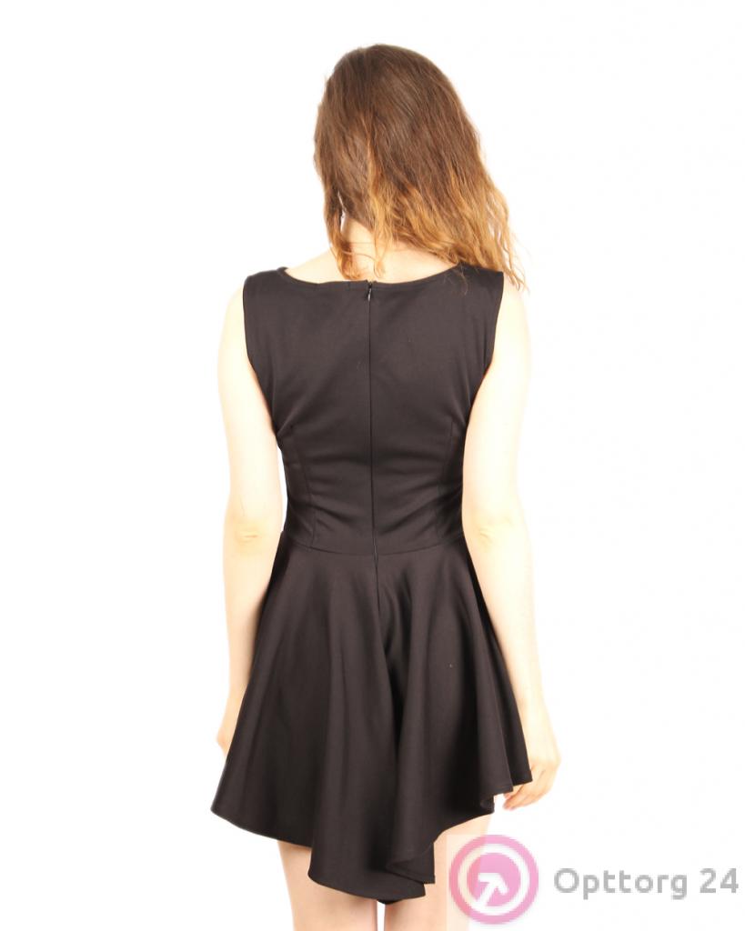 Платье черное короткое с асимметричным низом оптом