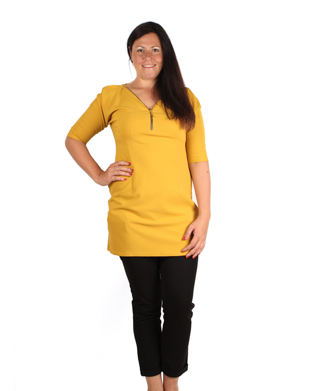 Это необычное и стильное платье сразу же впечатляет своим потрясающим горчичным цветом, который великолепно смотрится и на блондинках, и на брюнетках, его яркость невозможно не заметить, поэтому, надев это платье вы станете объектом всеобщего внимания.