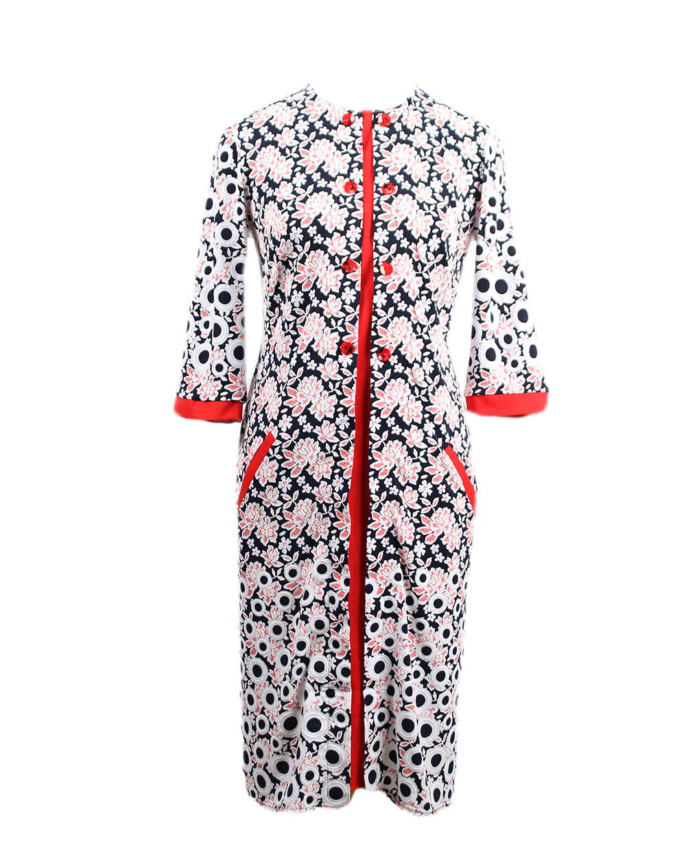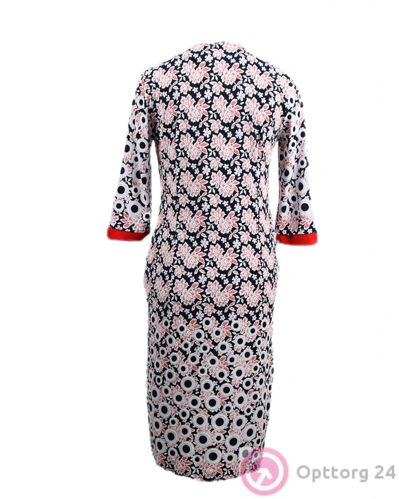 Платье-халат женское бело-розовое с красными вставками оптом