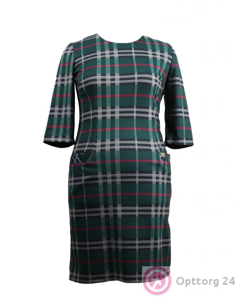 Платье клетчатое зеленого цвета оптом