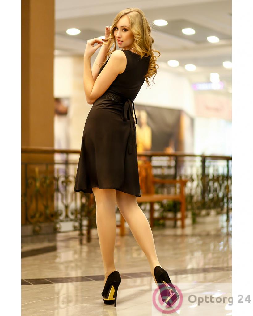 Платье коктейльное из черного шифона оптом