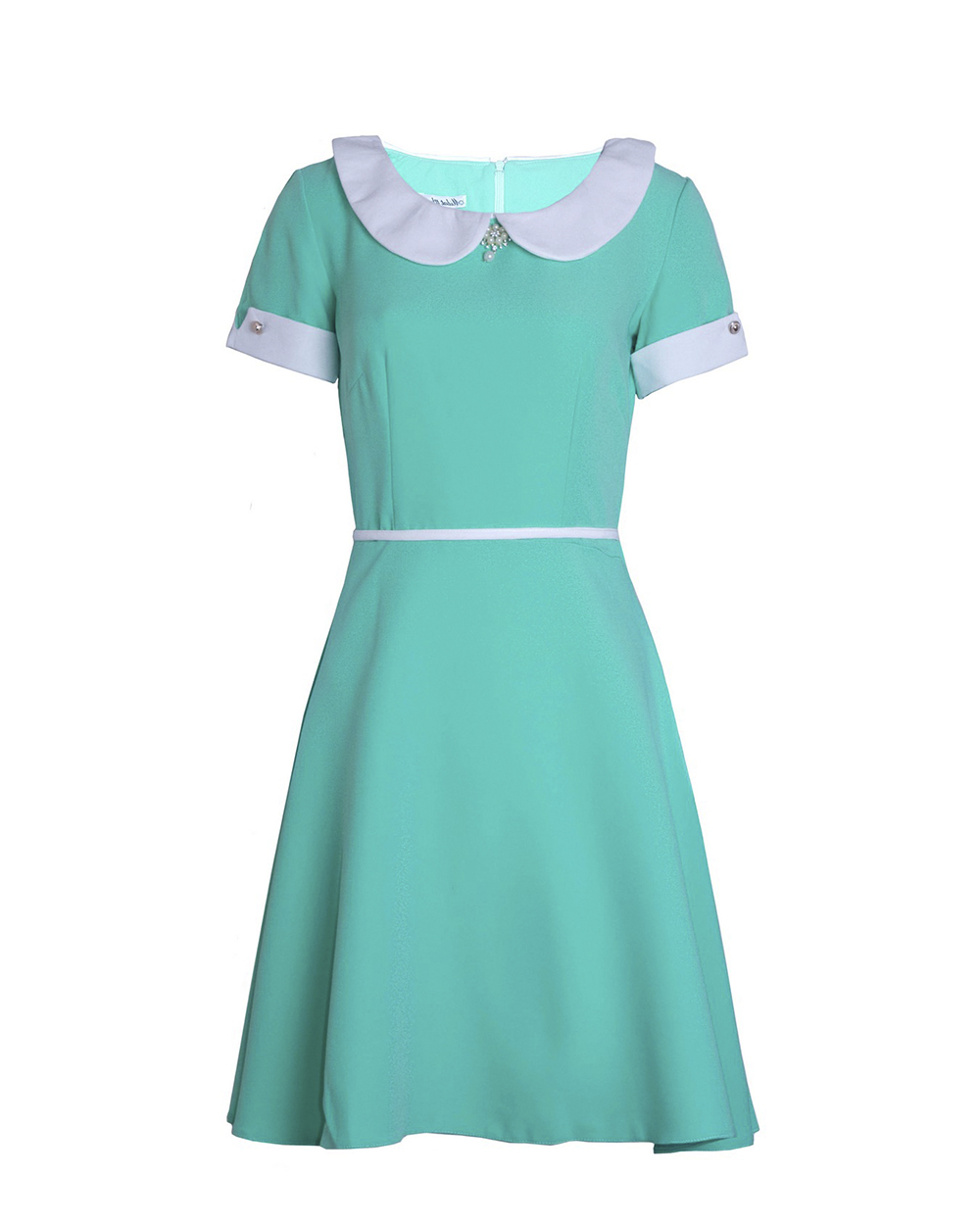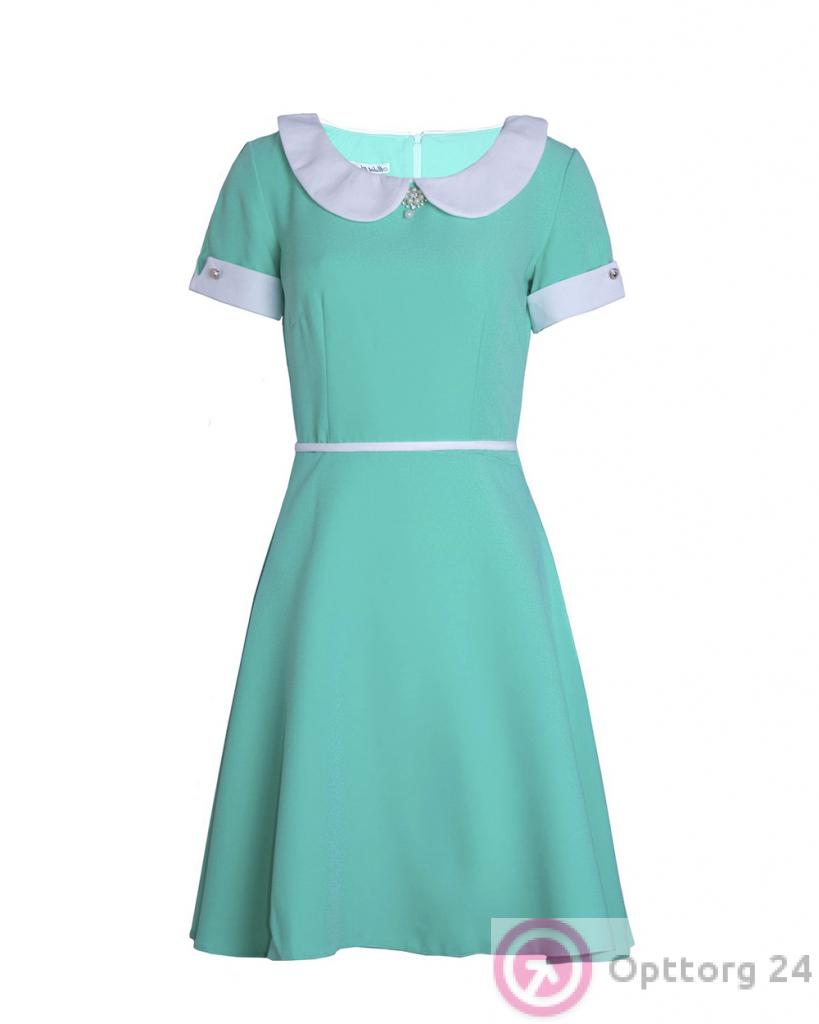 Легкое платье с короткими рукавами и оригинальным контрастным воротником. Модель сшита таким образом, что отлично подчеркивает фигуру.