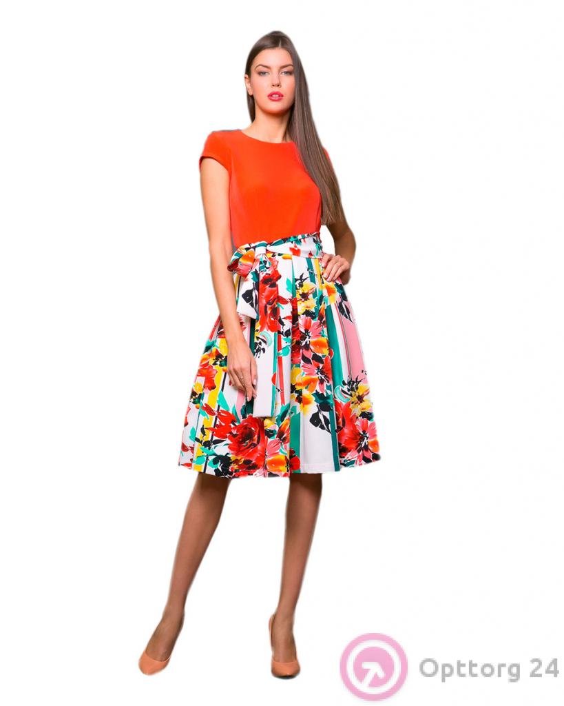 Платье оранжевое с цветастым низом оптом