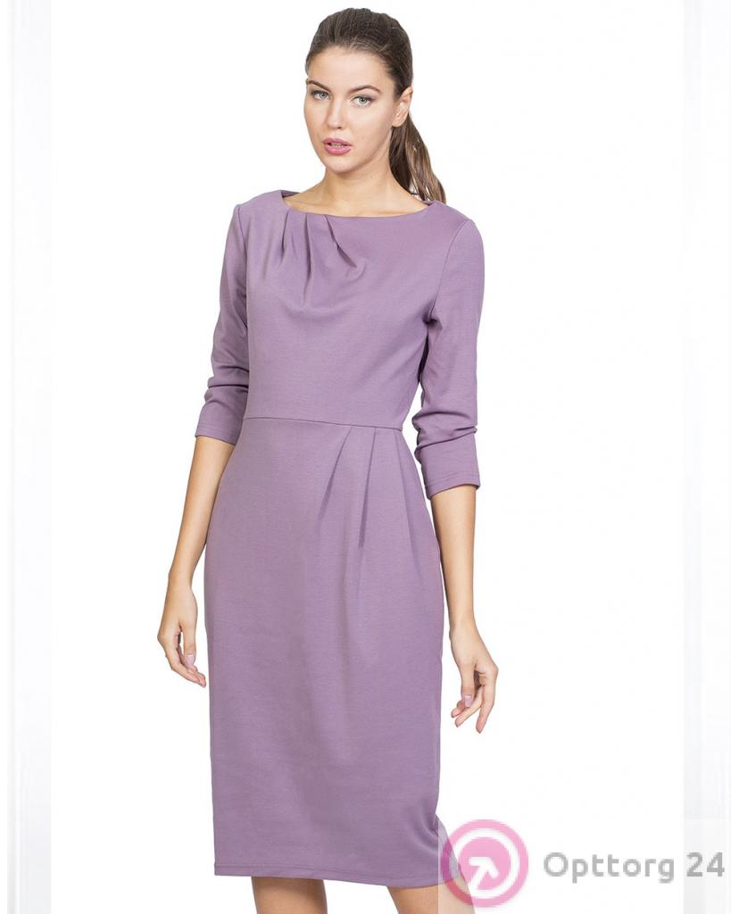 Прямое, привлекательное платье сиреневого цвета со складками. Класическкая модель подойдет для банкетов или похода в ресторан.