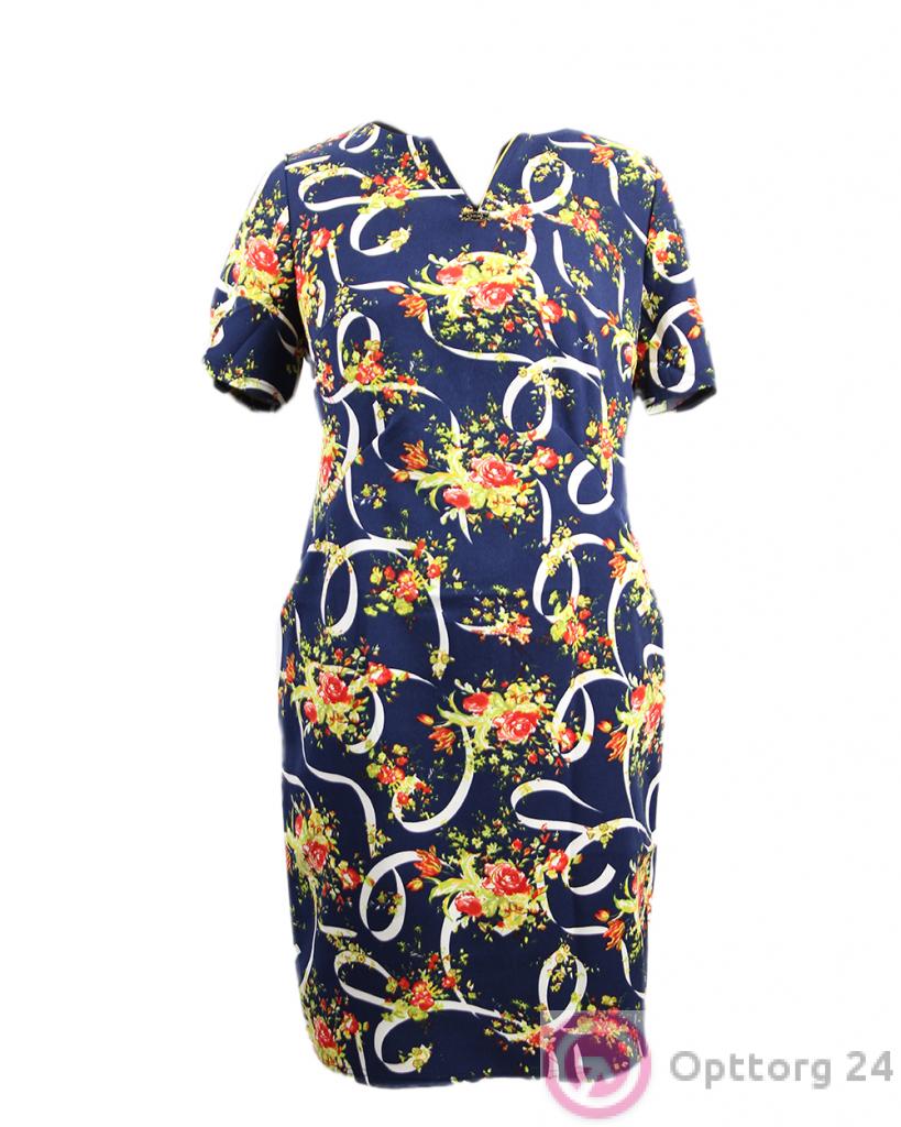 Платье с цветочным принтом и короткими рукавами оптом