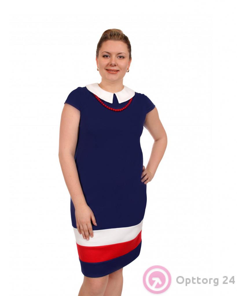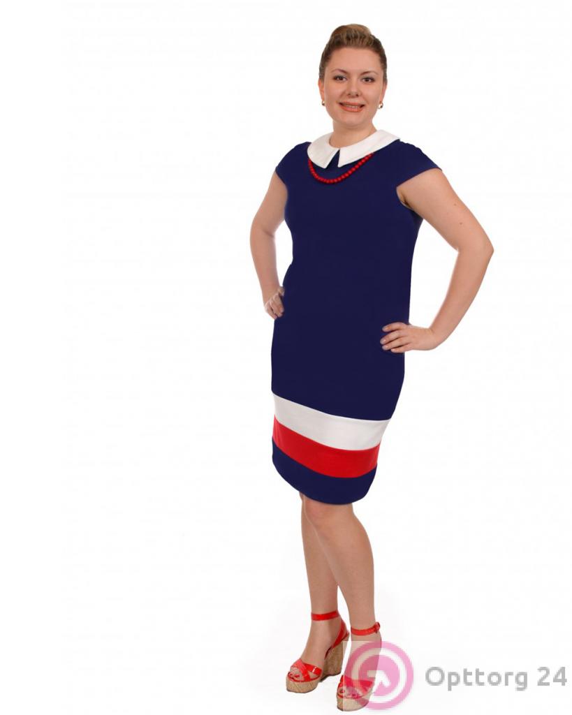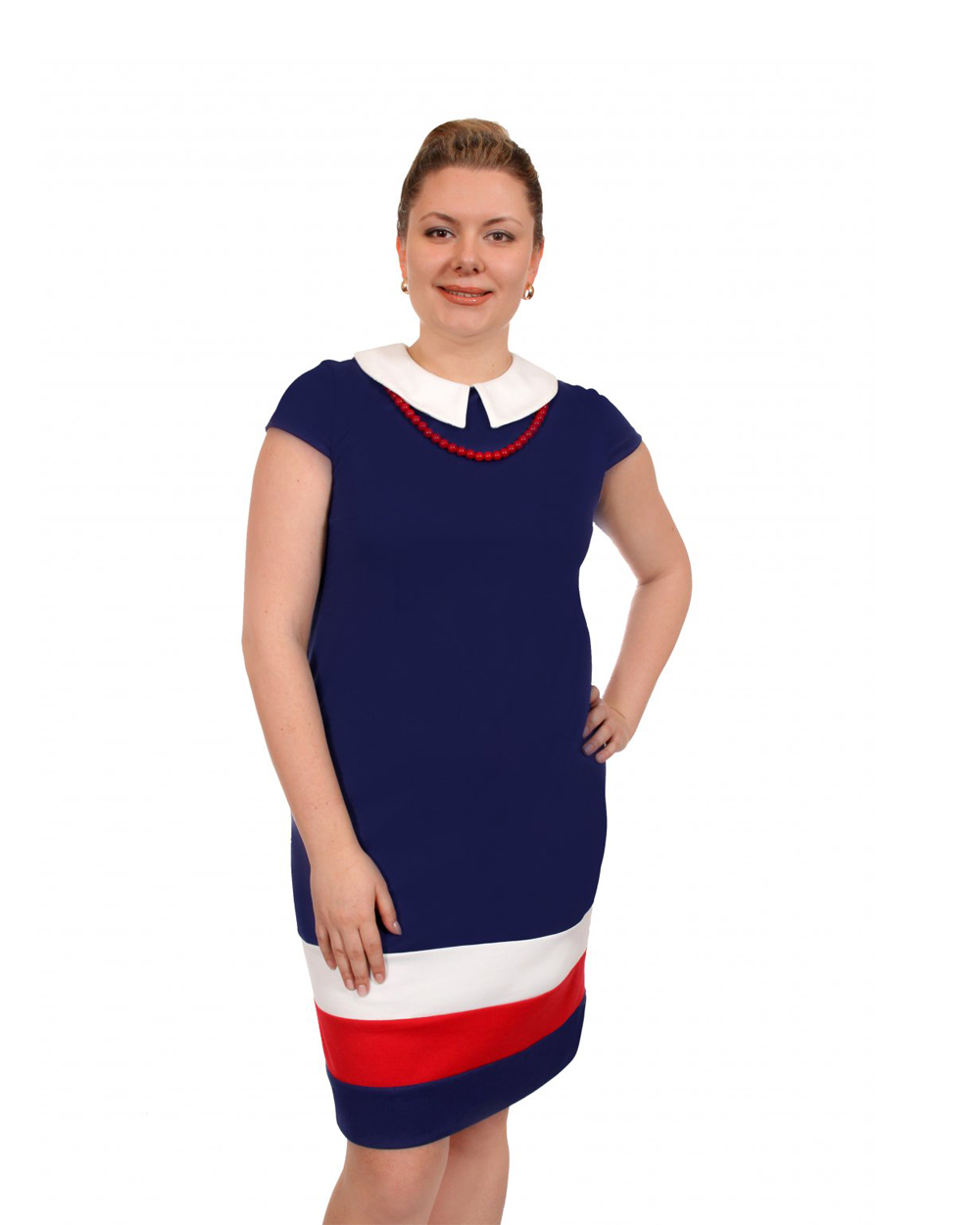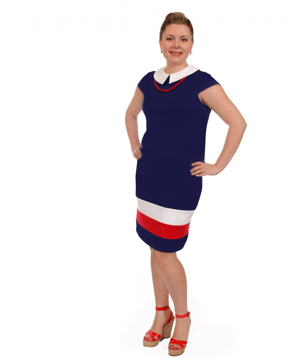 Стильное платье из трикотажа с изящным белым воротником. Изделие будет отлично смотреться с яркими бусами.