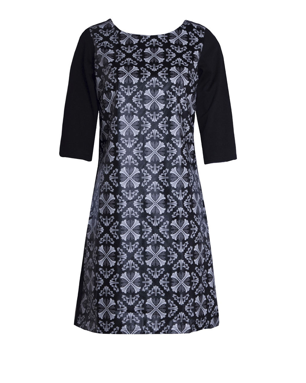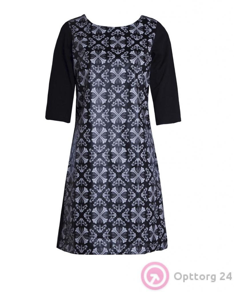 Эффектное темно-синего цвета платье. Широкая округлая горловина подчеркнет линию шеи и плечи, а рукав три четверти обратит внимание окружающих на изящные запястья.