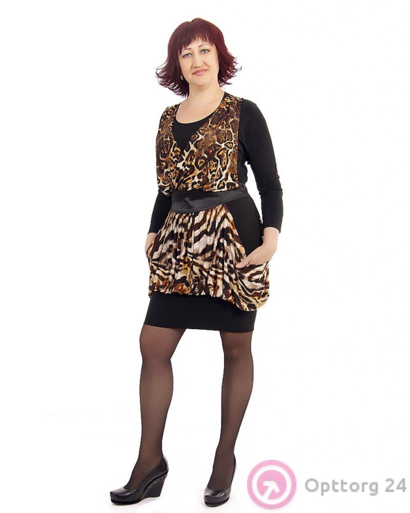 Стильное облегающее платье с анималистичным принтом. Линия талии выгодно подчеркнута с помощью пояса.