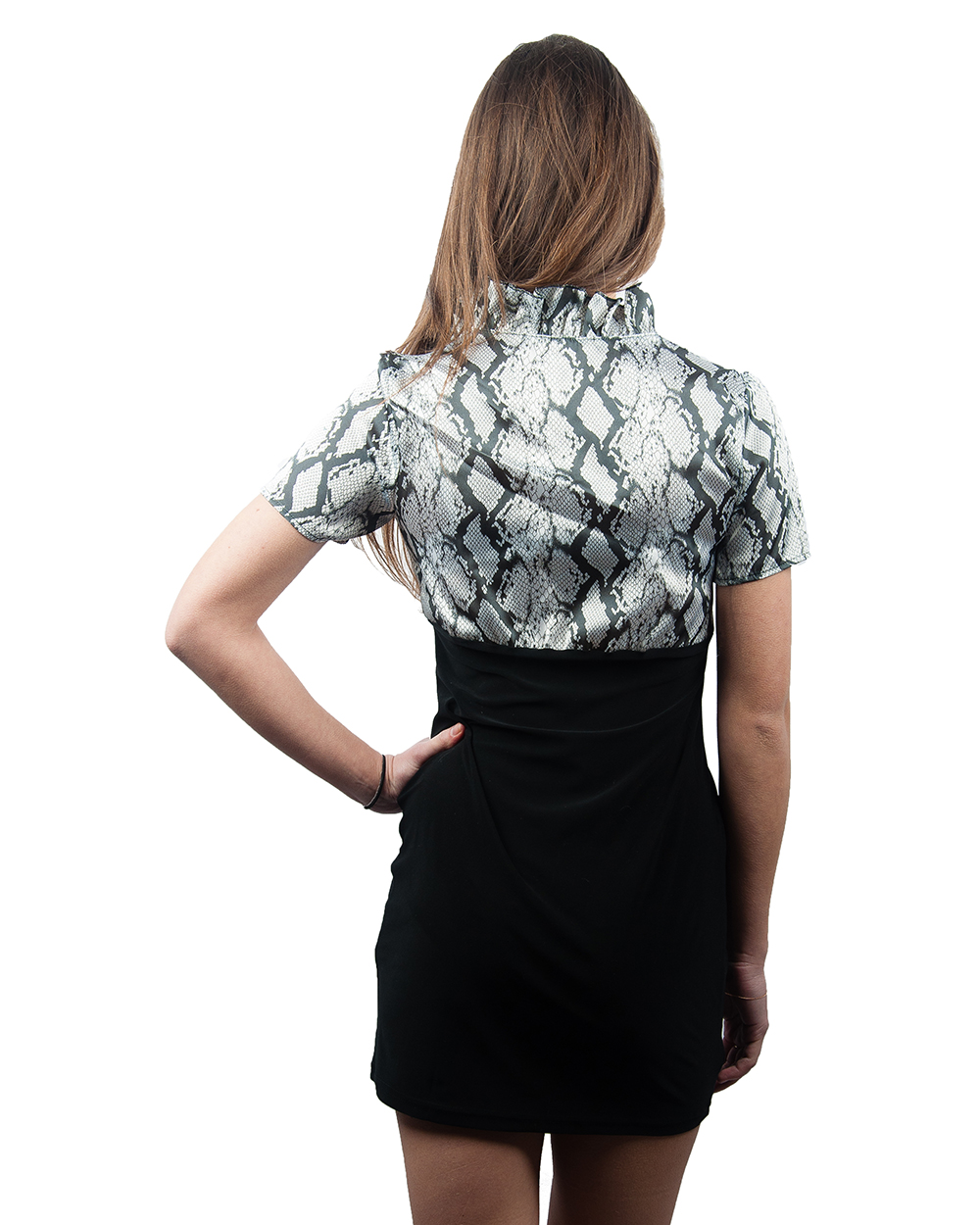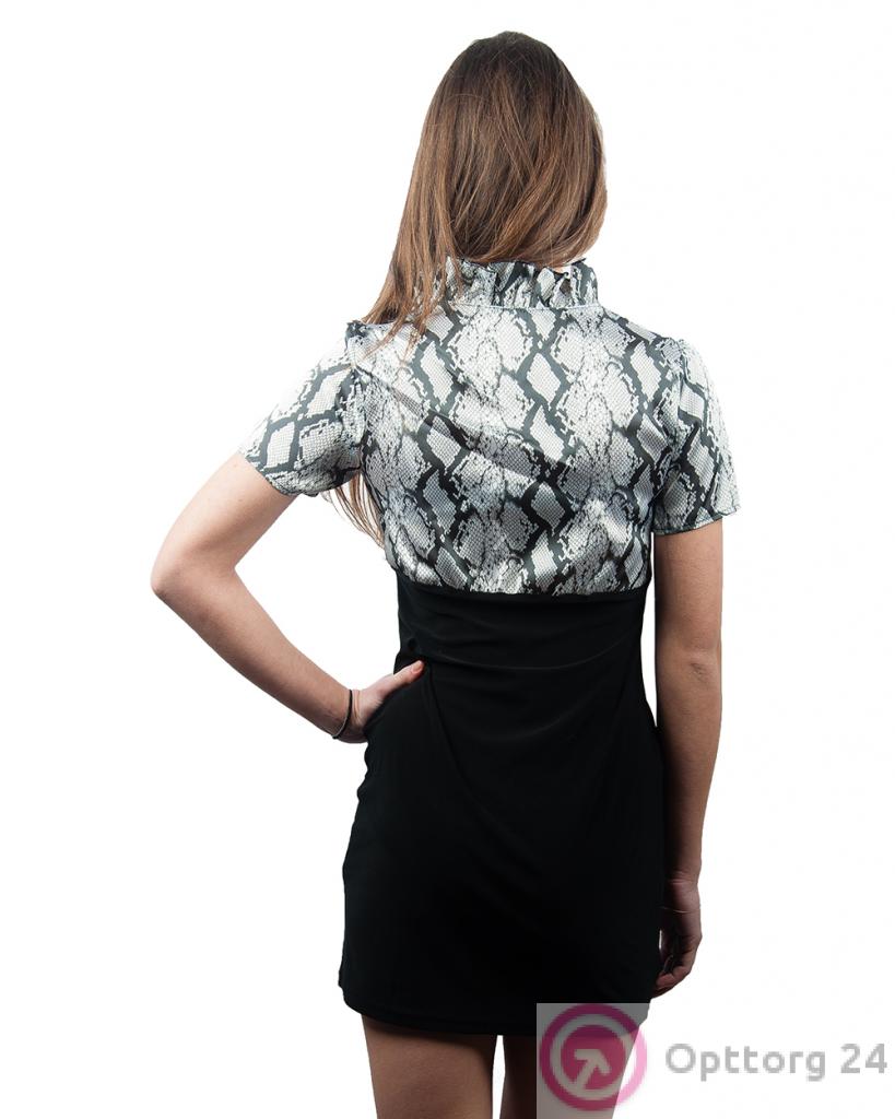 Платье-туника женское молодежное черно-белое со змеиным принтом оптом