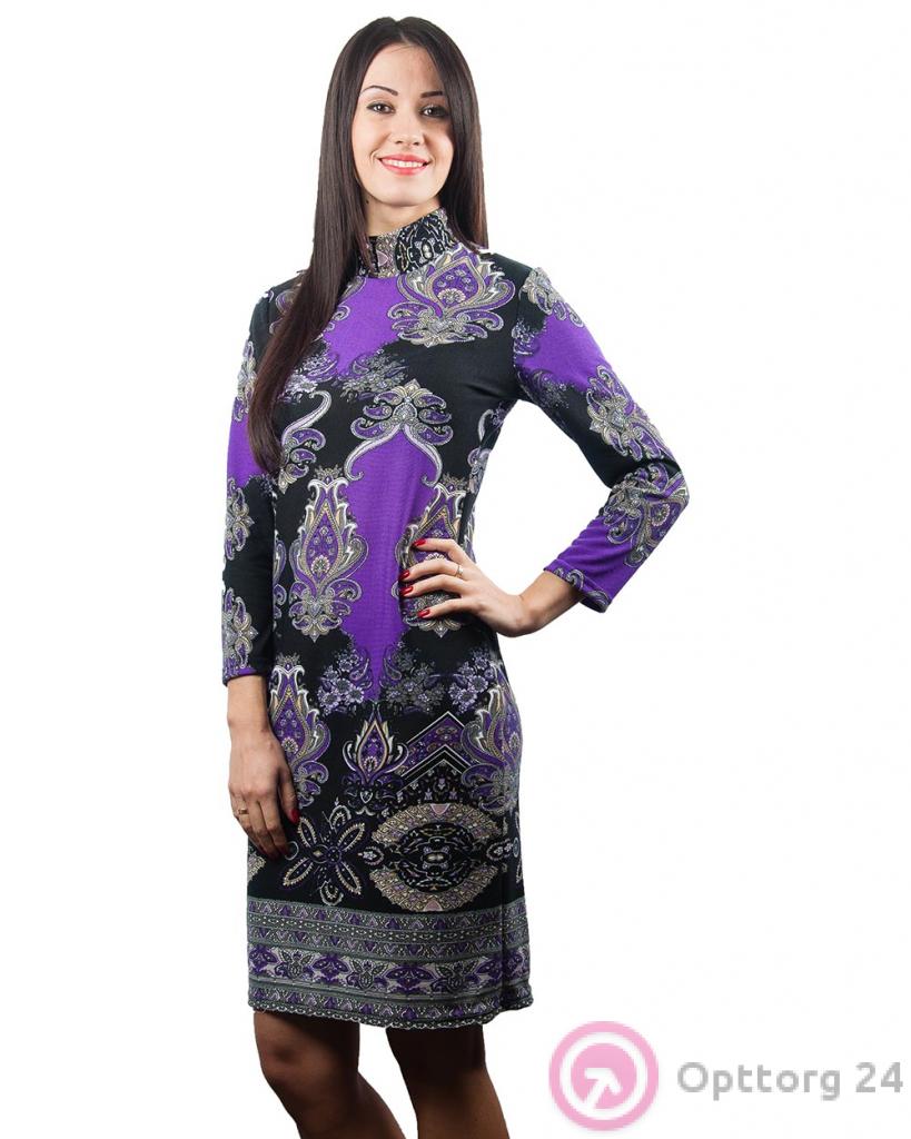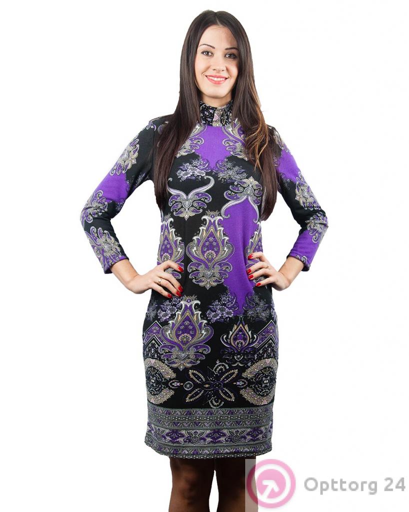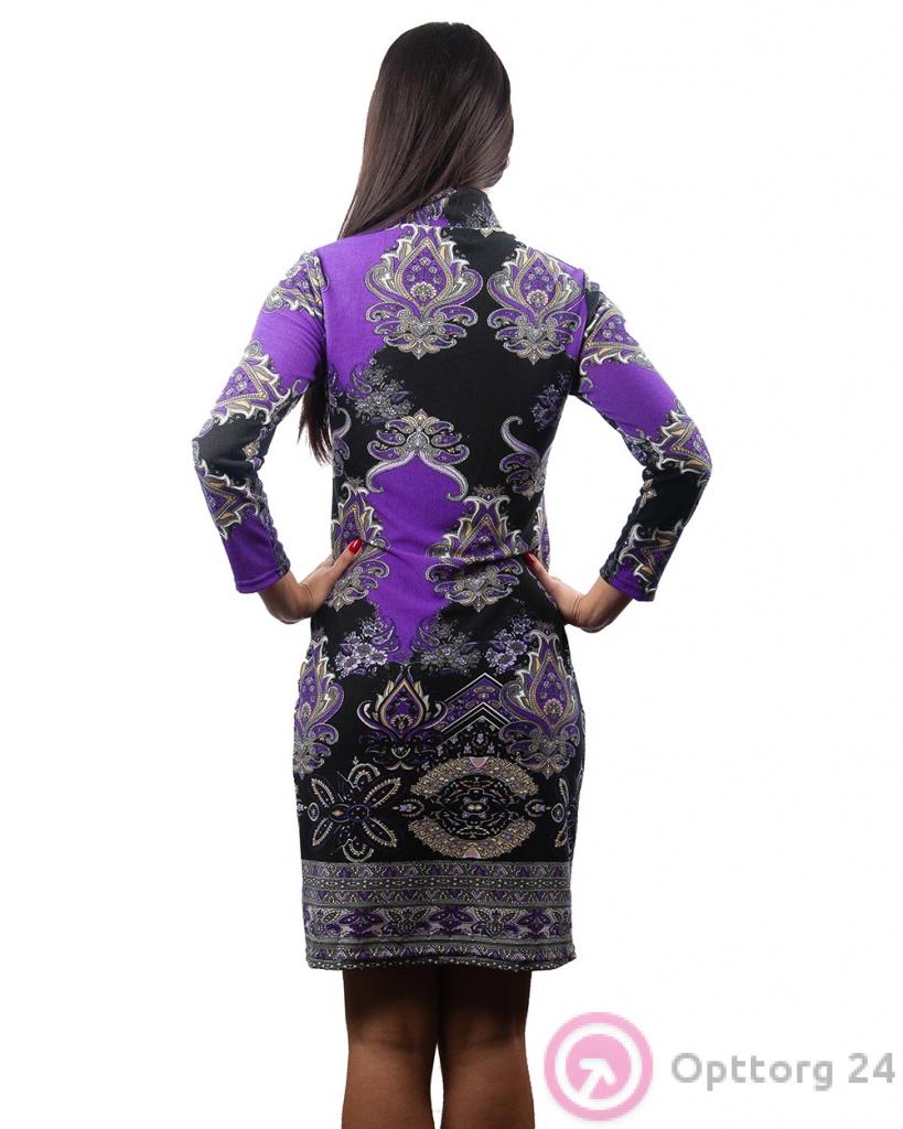 Платье женское черно-фиолетовое с абстрактным принтом оптом