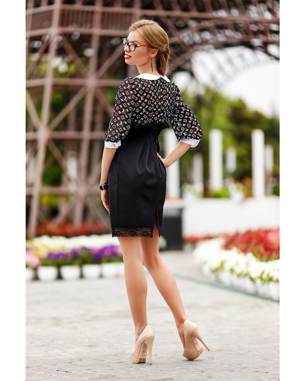 Состав: костюмная ткань (котон 60%, акрил 30%, эластан 10%), шифон (полиэстер 60%, вискоза 20%, капрон 20%);
