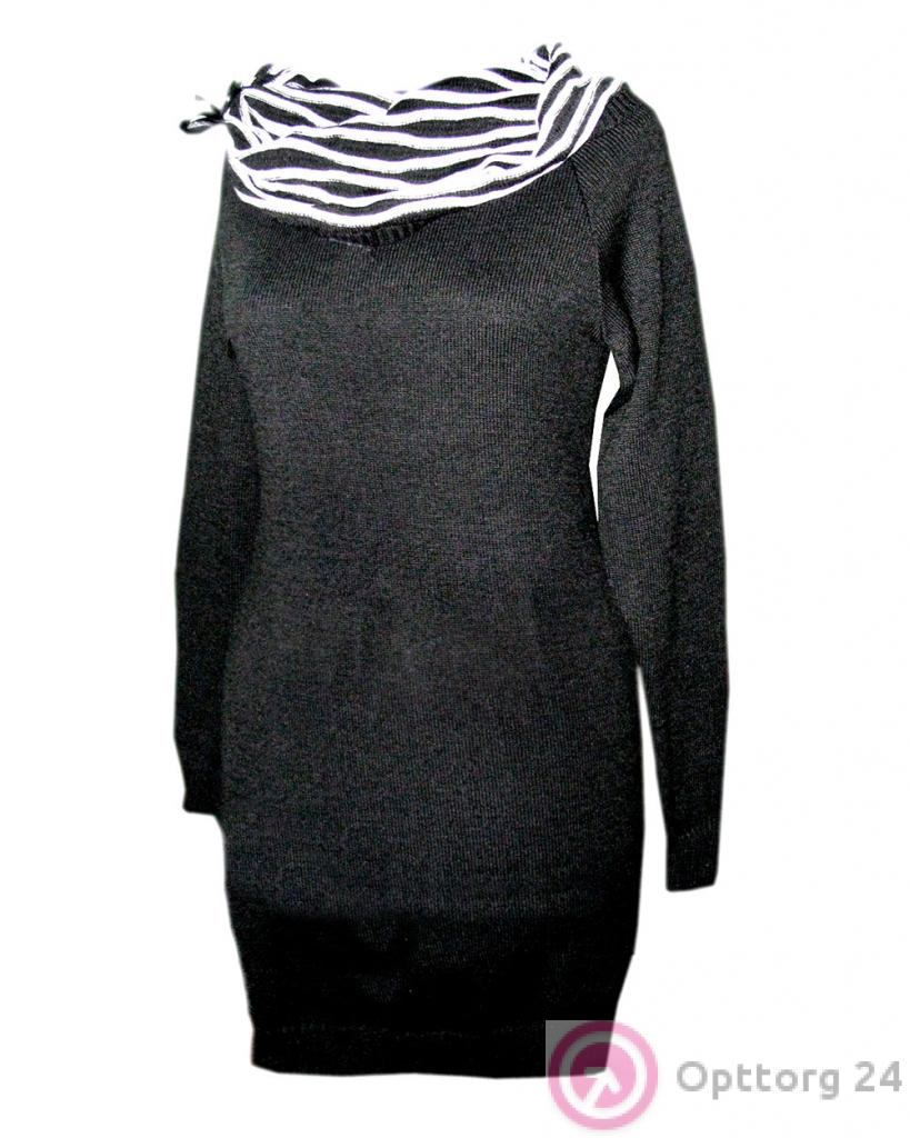 Платье женское черное приталенное с воротником-хомутом оптом