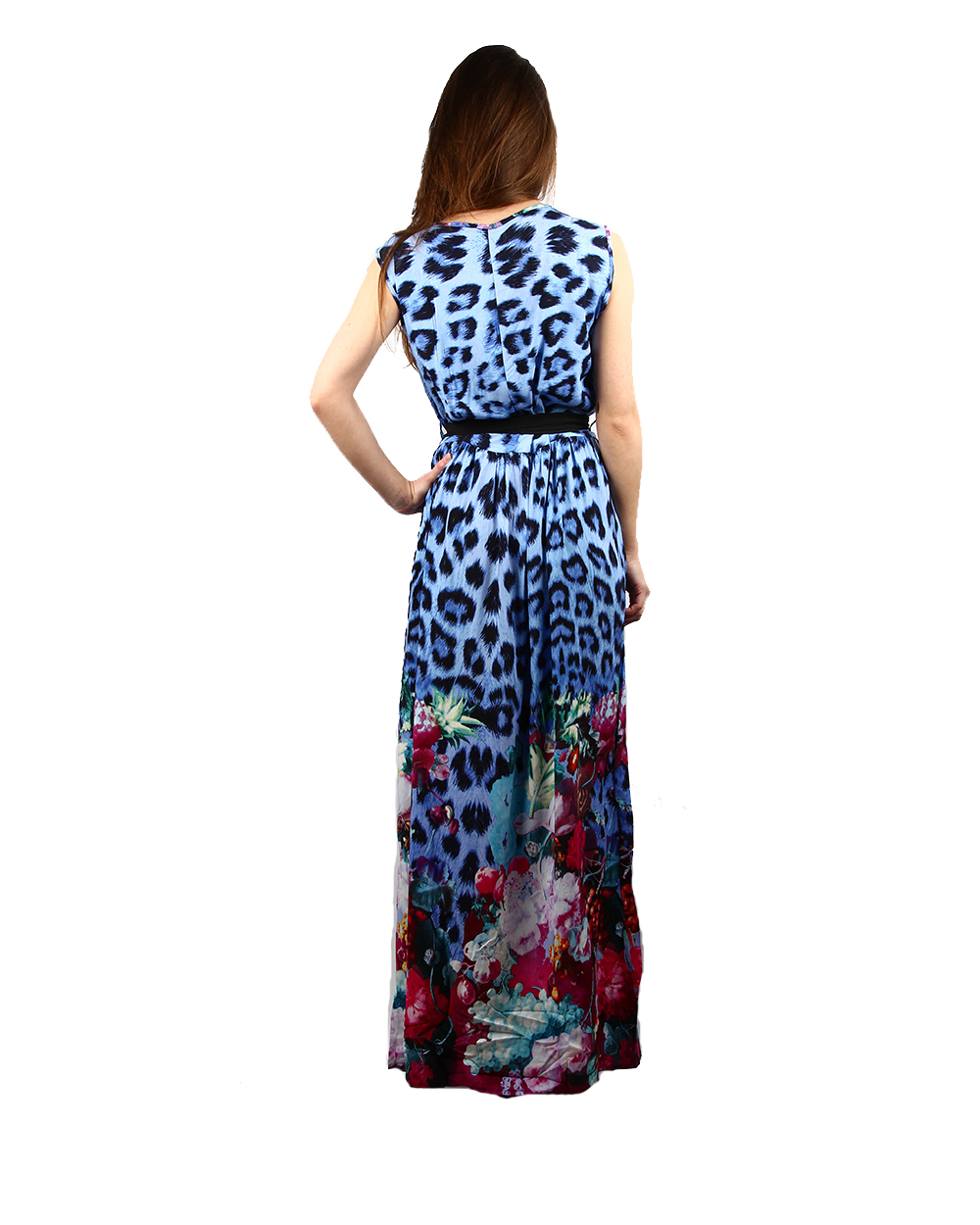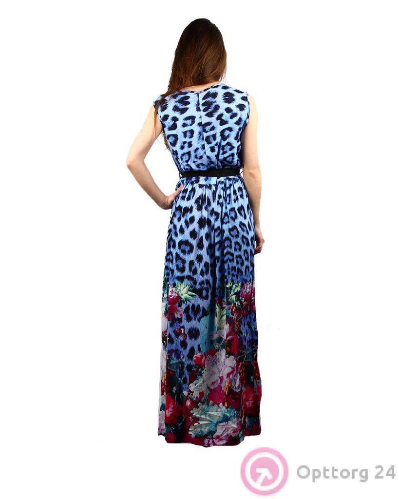 Платье женское длинное синего цвета с цветочным принтом оптом