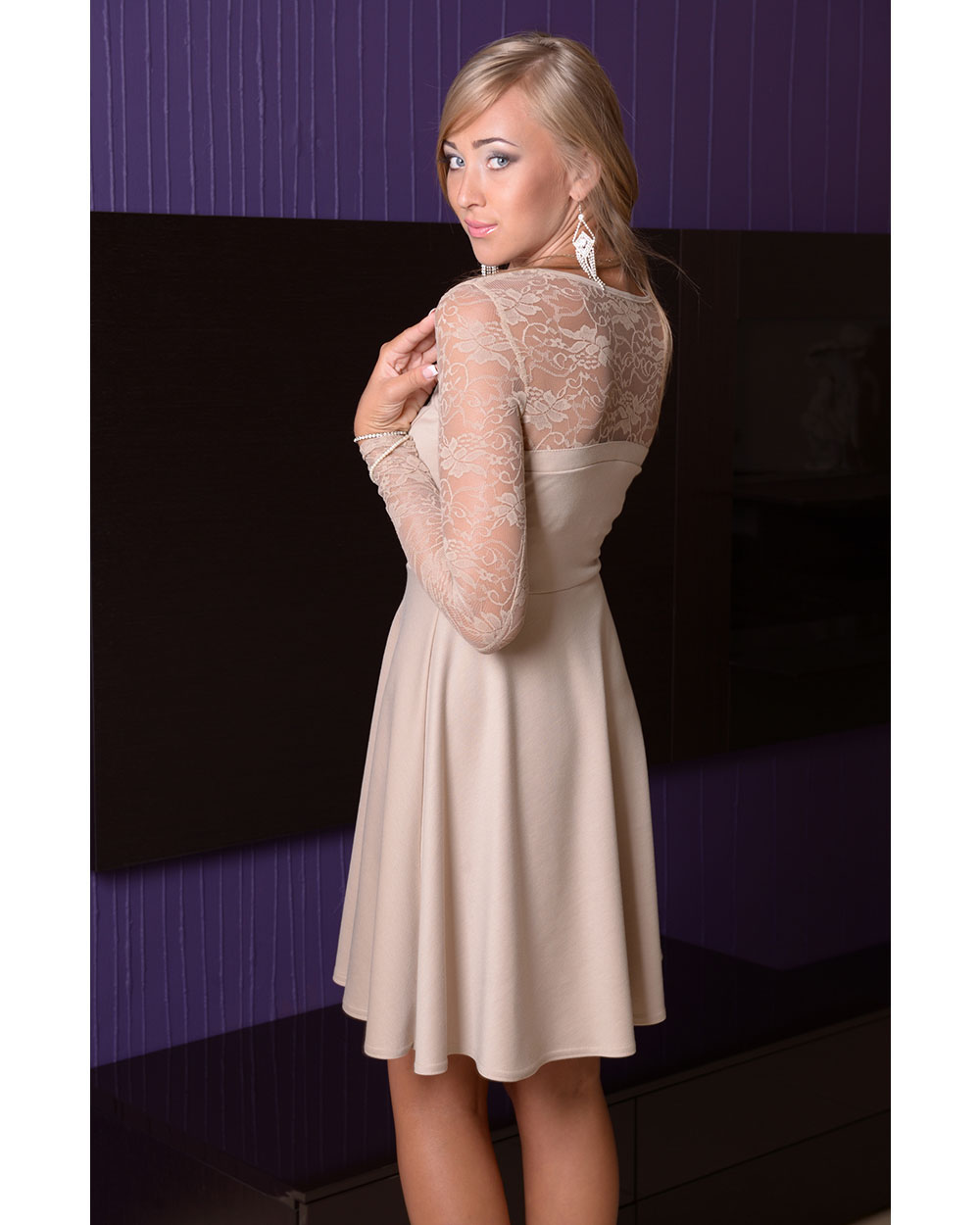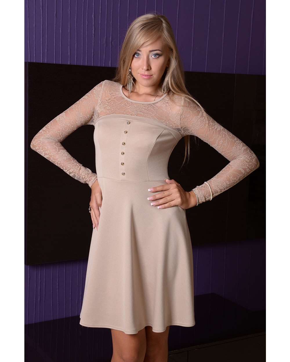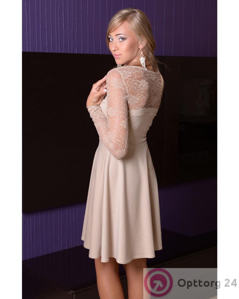 Платье женское коктейльное с гипюровой вставкой бежевого цвета оптом