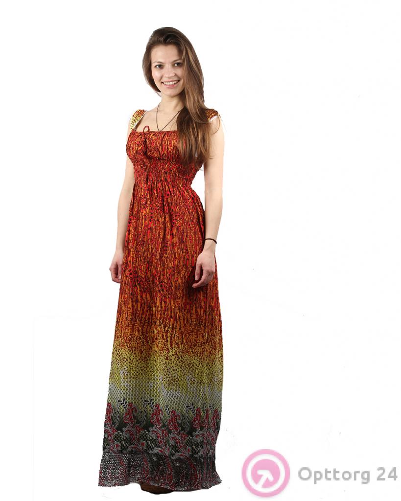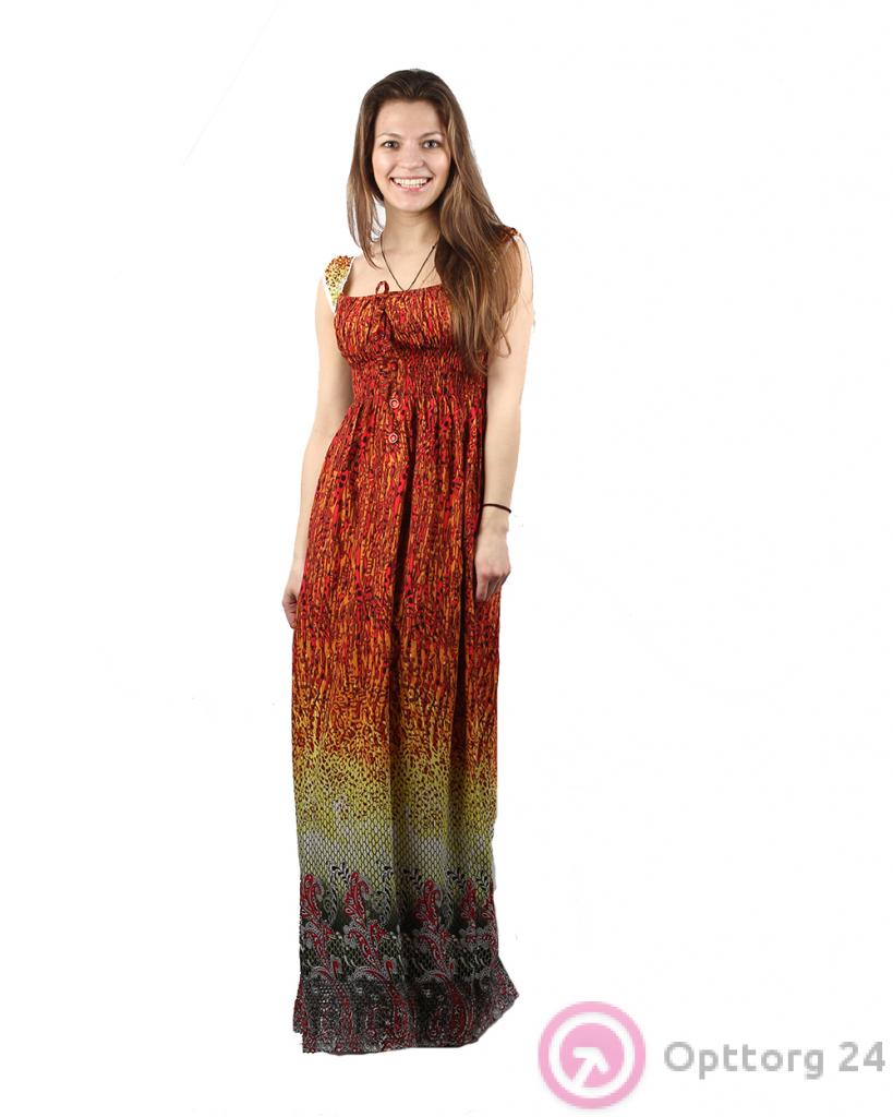 Платье женское коричневого цвета с абстрактным принтом оптом