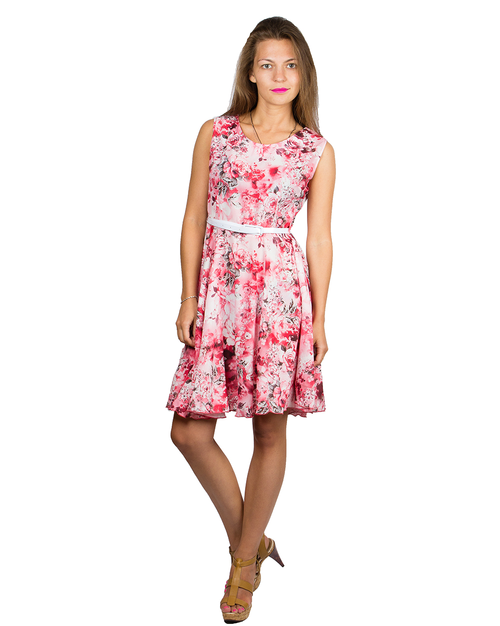 Платье женское красное с цветочным узором оптом