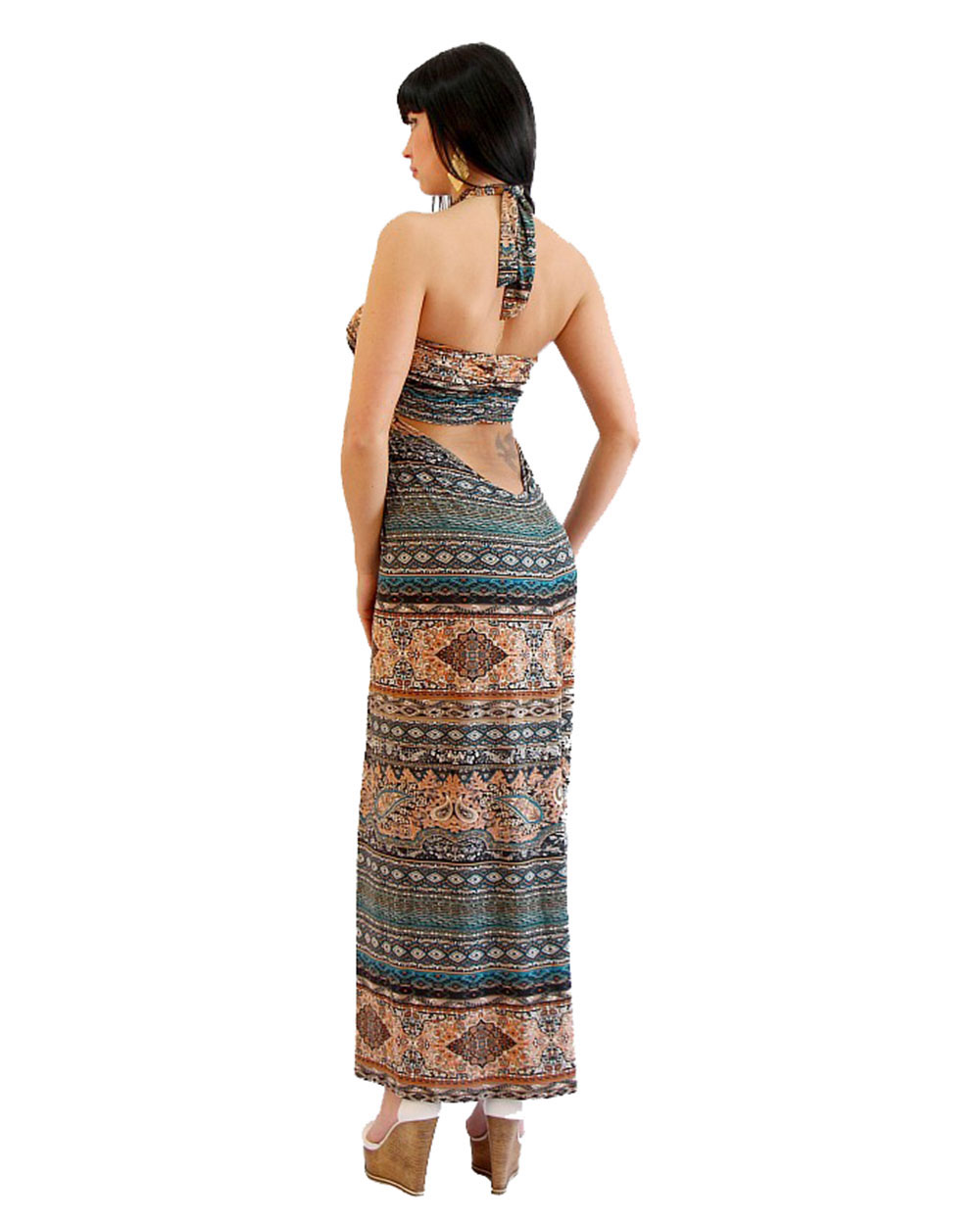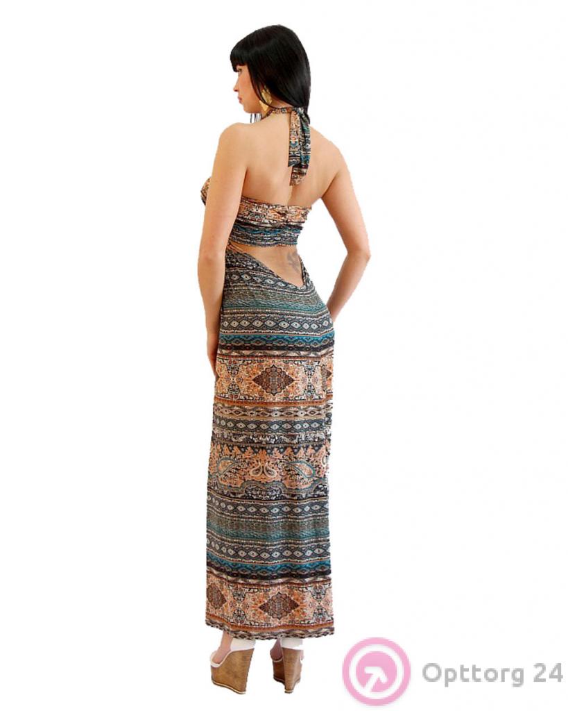 Платье женское летнее оранжево-голубое с этно-принтом оптом