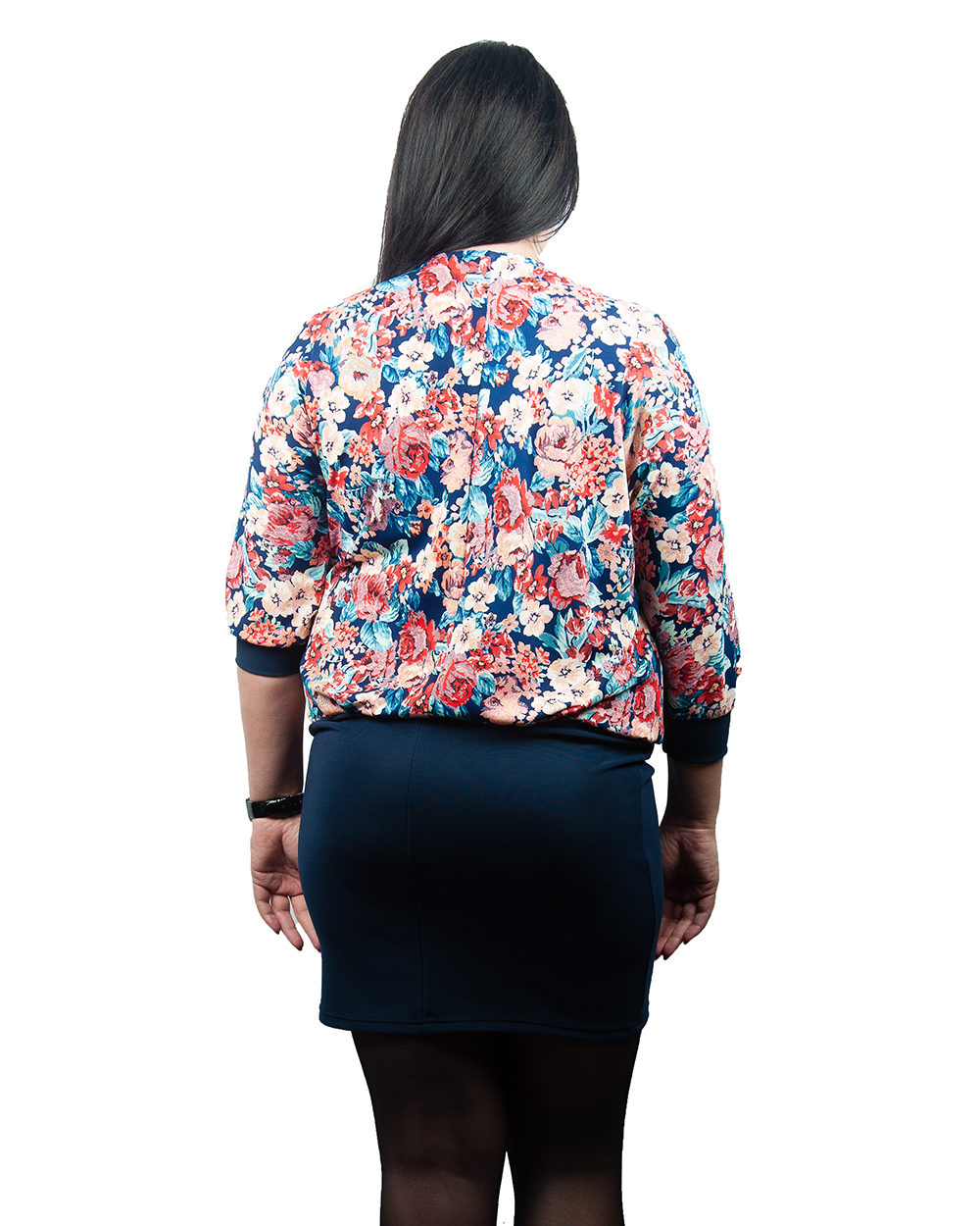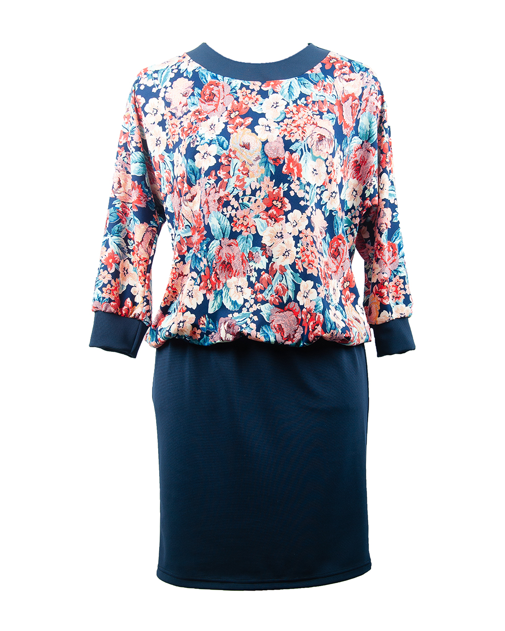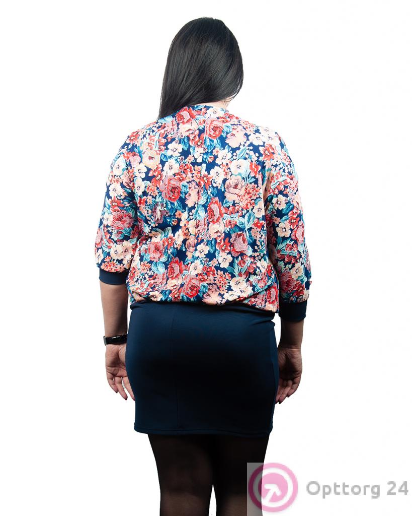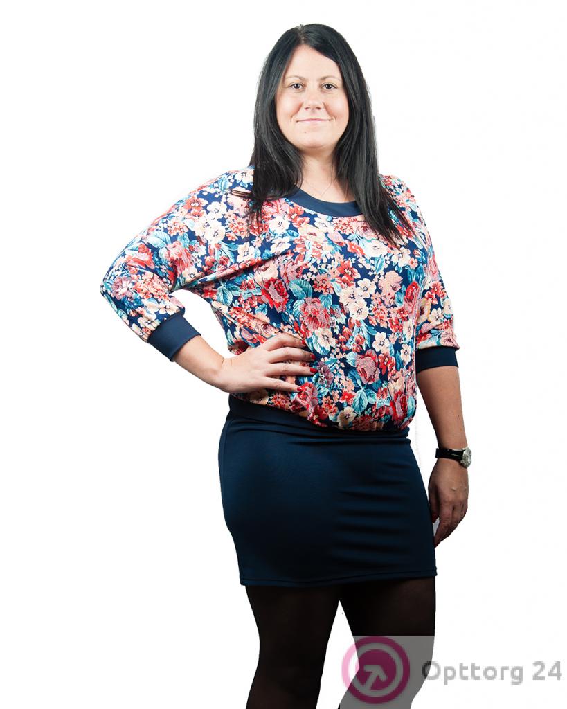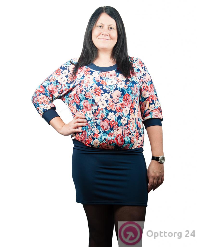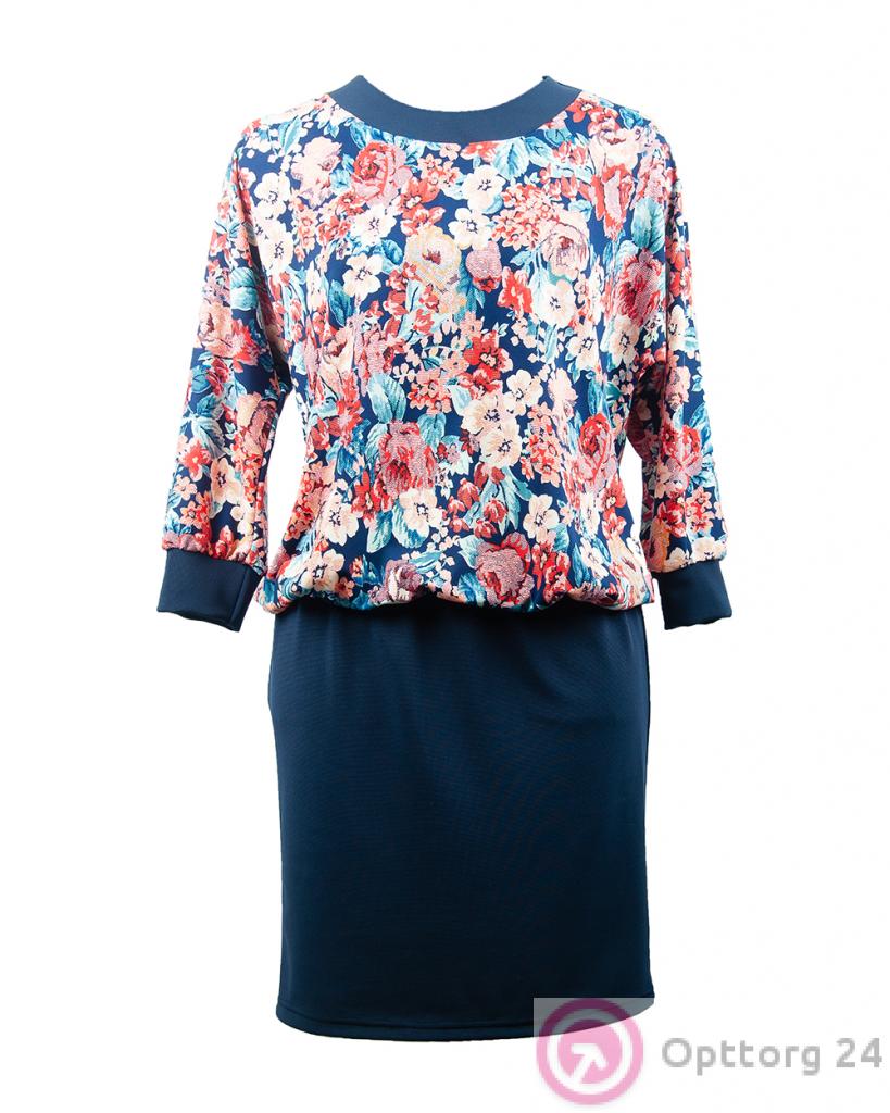 Платье женское "Летучая мышь" красно-синее с цветочным принтом оптом