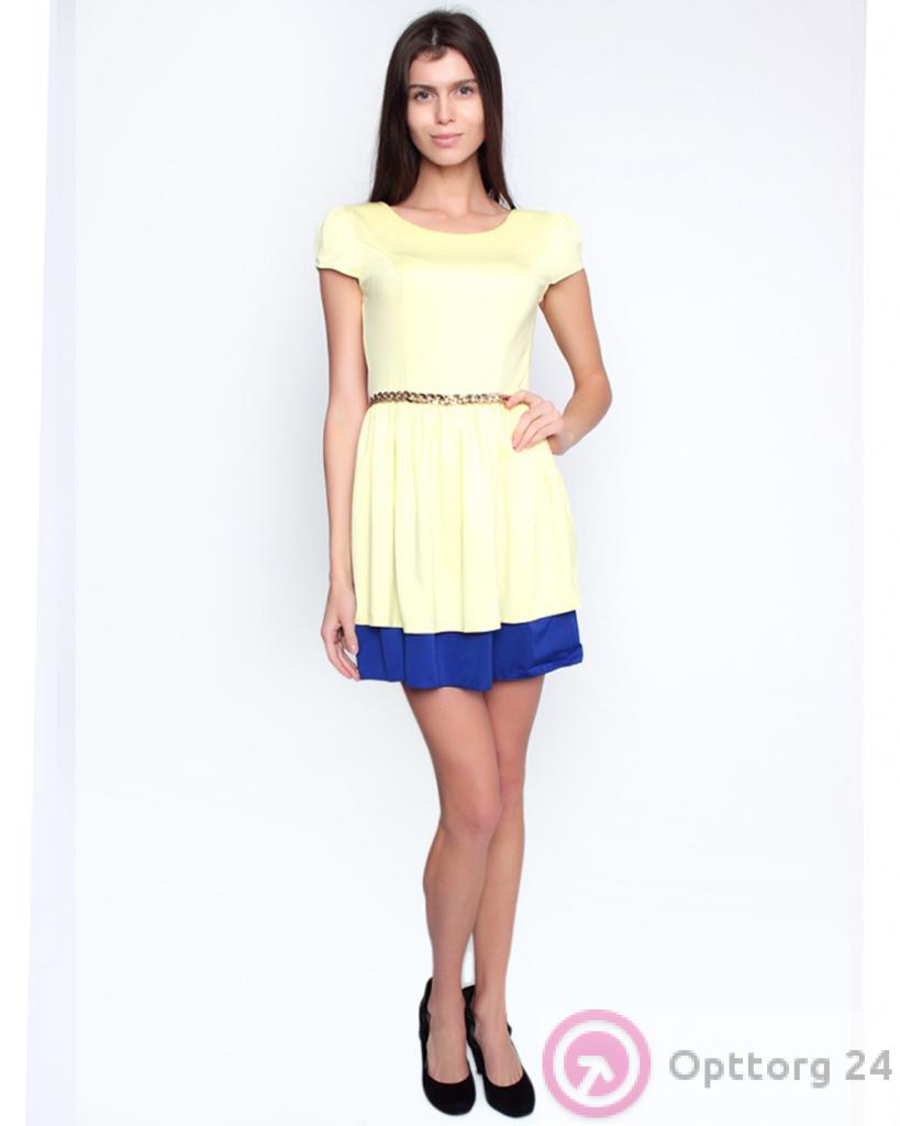 Платье женское лимонного цвета с синей подкладкой на юбке. оптом