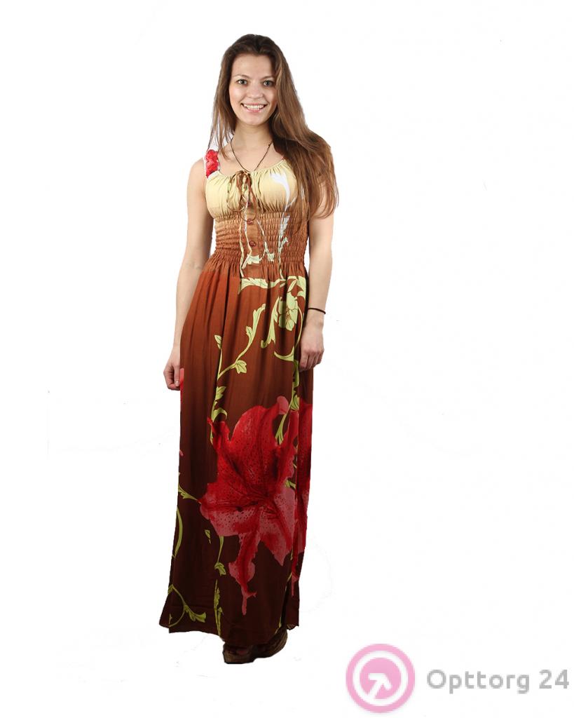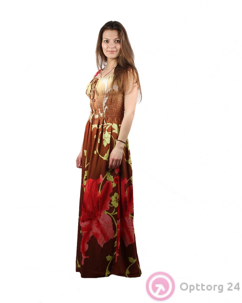 Платье женское приталенное кофейного цвета с завязкой оптом