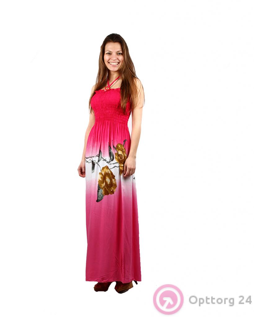 Платье женское розового цвета с гофрированным верхом на завязках оптом