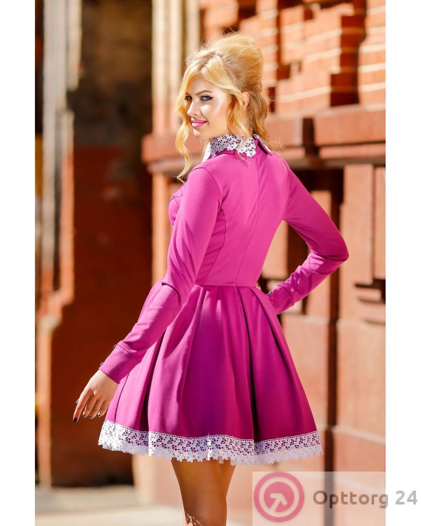 Платье женское с белой кружевной окантовкой сиреневое оптом