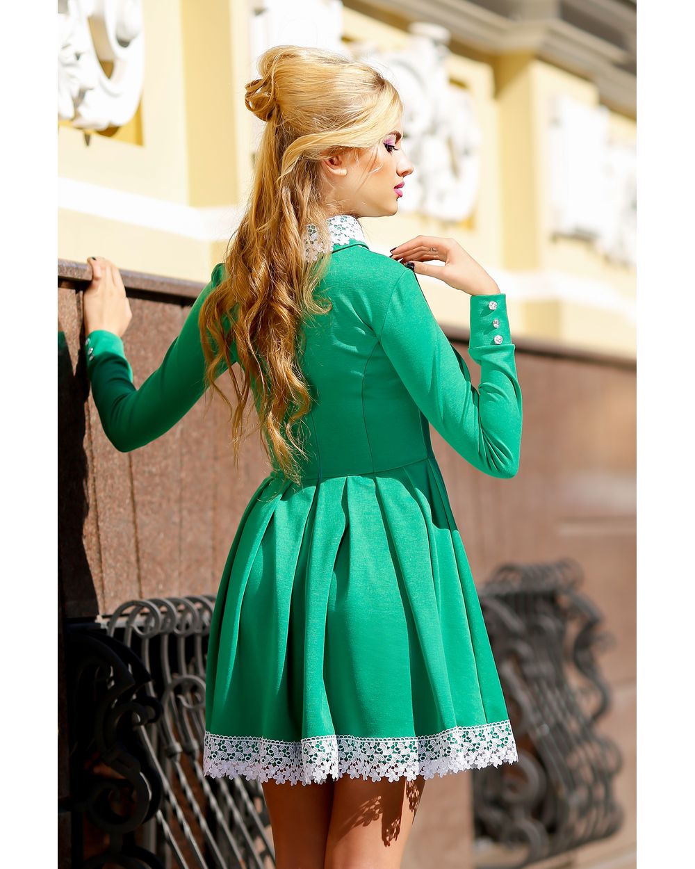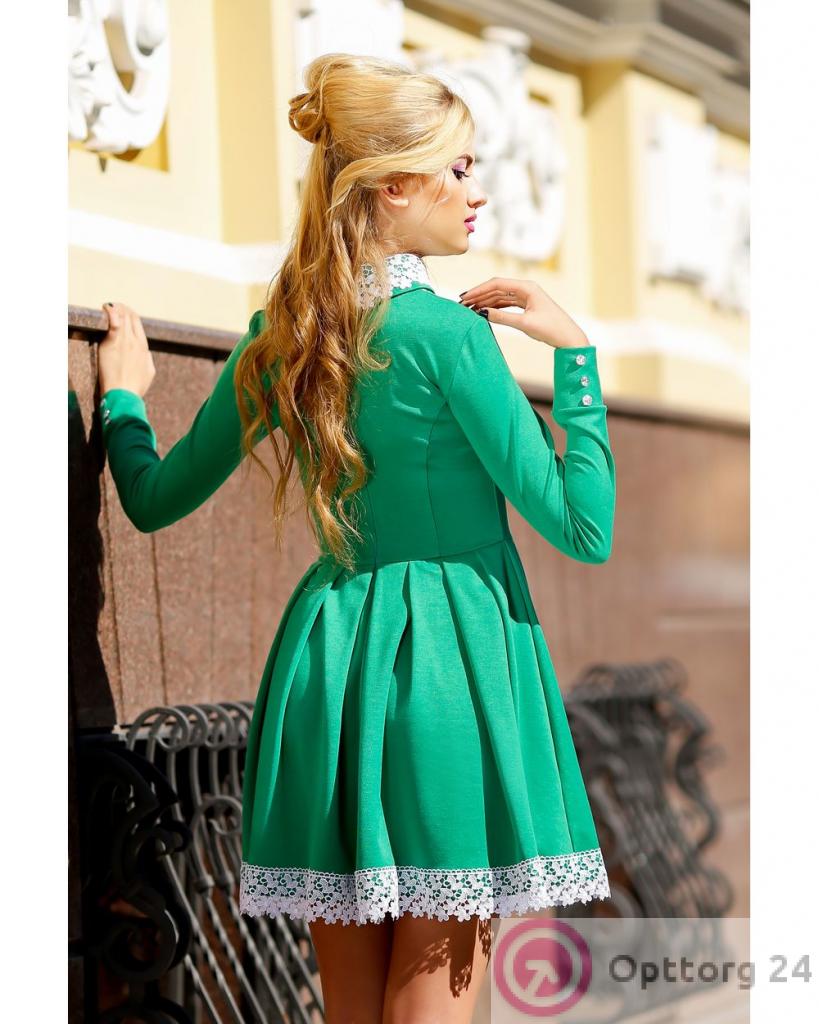 Платье женское с белой кружевной окантовкой зелёное оптом