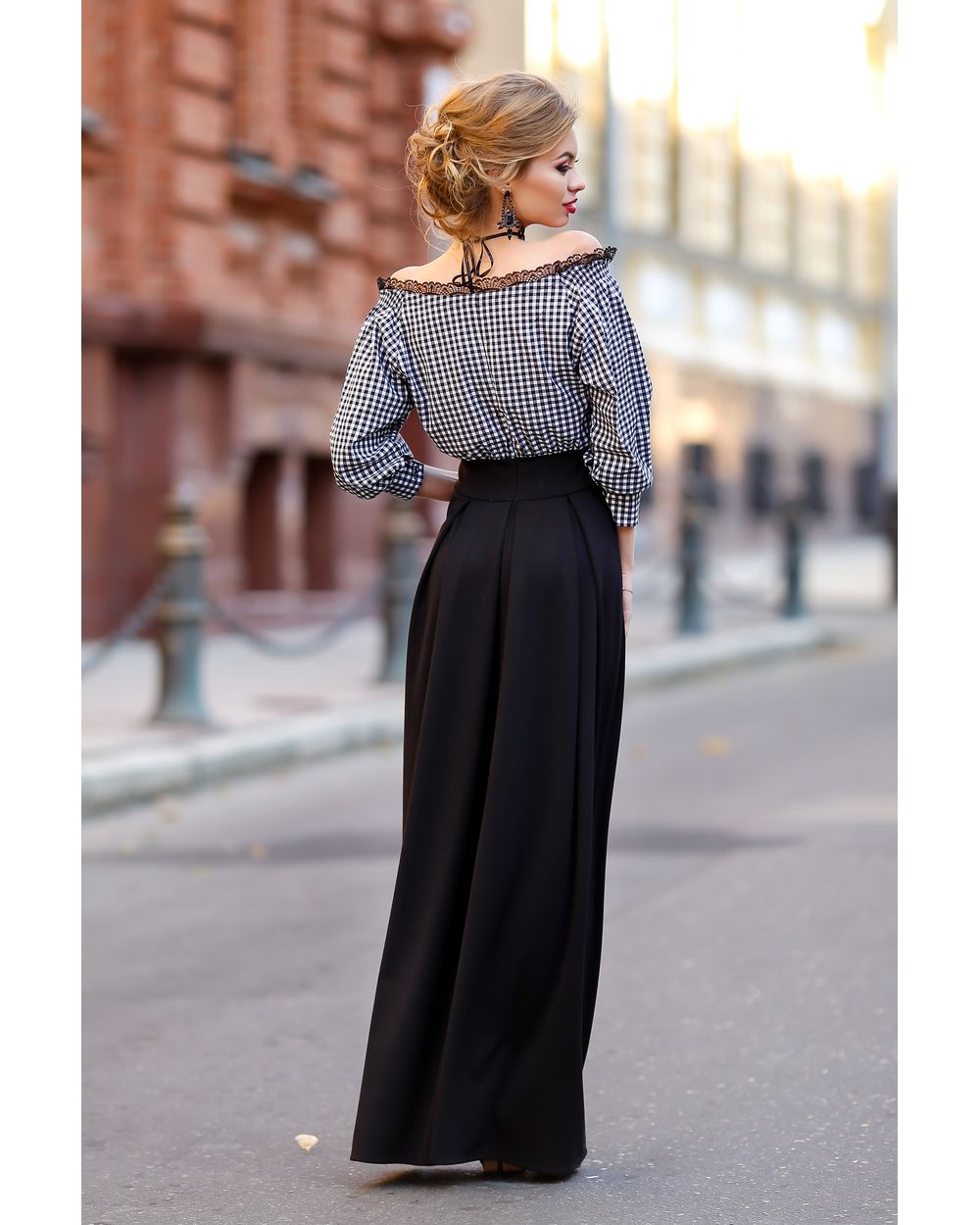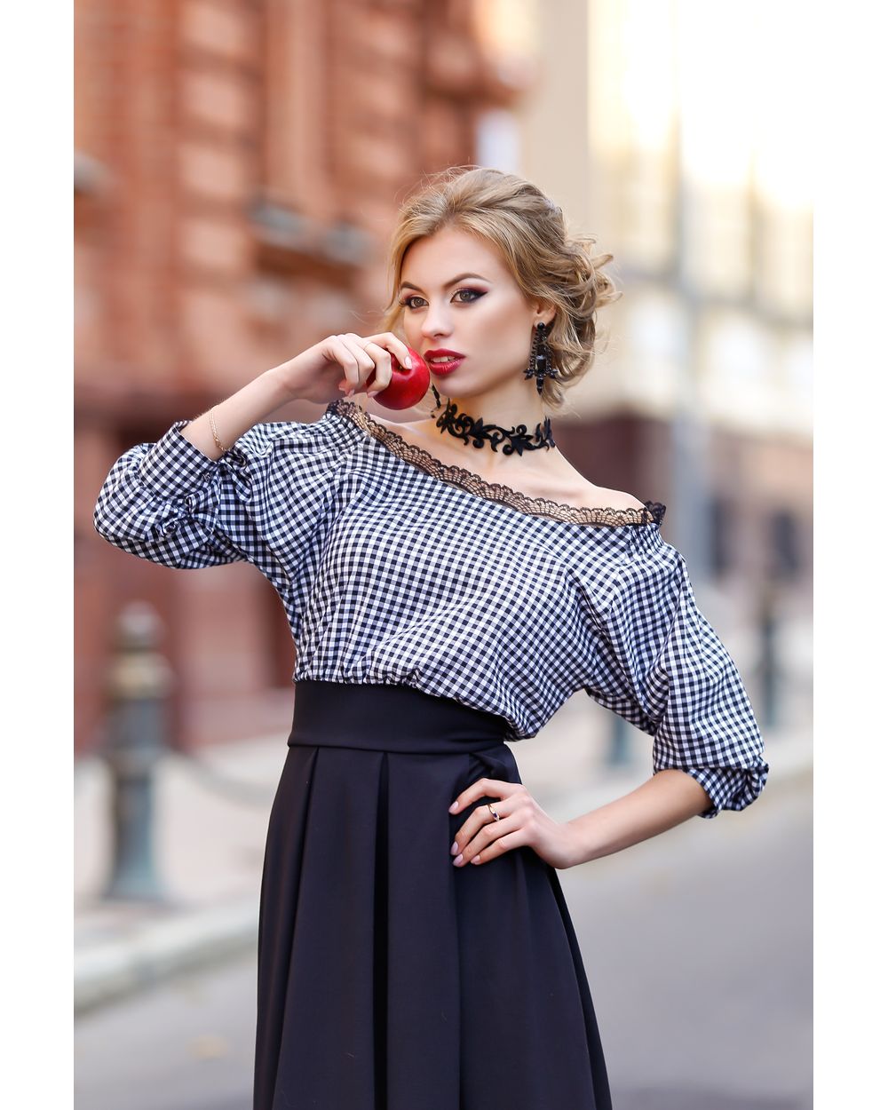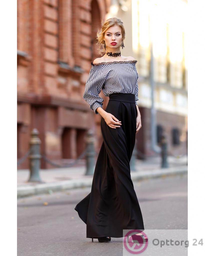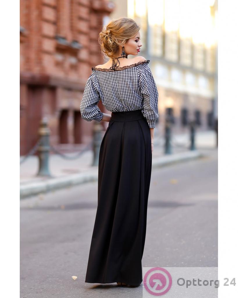 Платье женское с клетчатым верхом тёмно-синее оптом