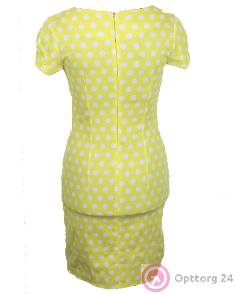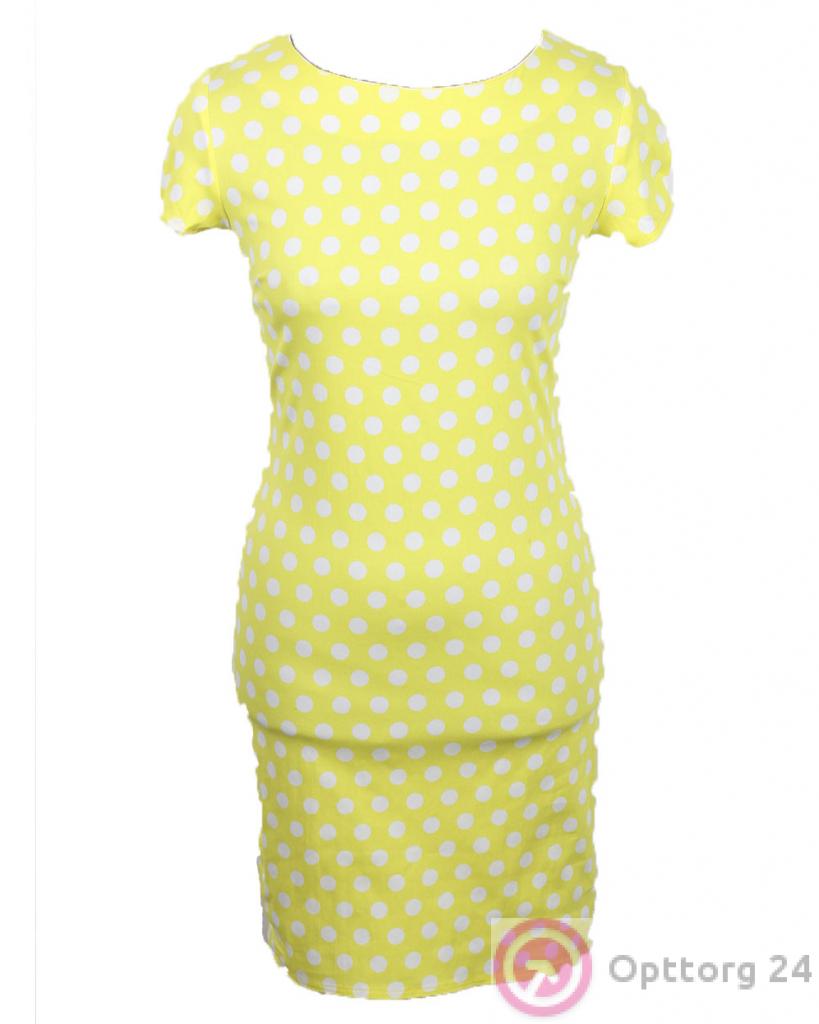 Платье женское с округлым вырезом желтого цвета в белый горох. оптом