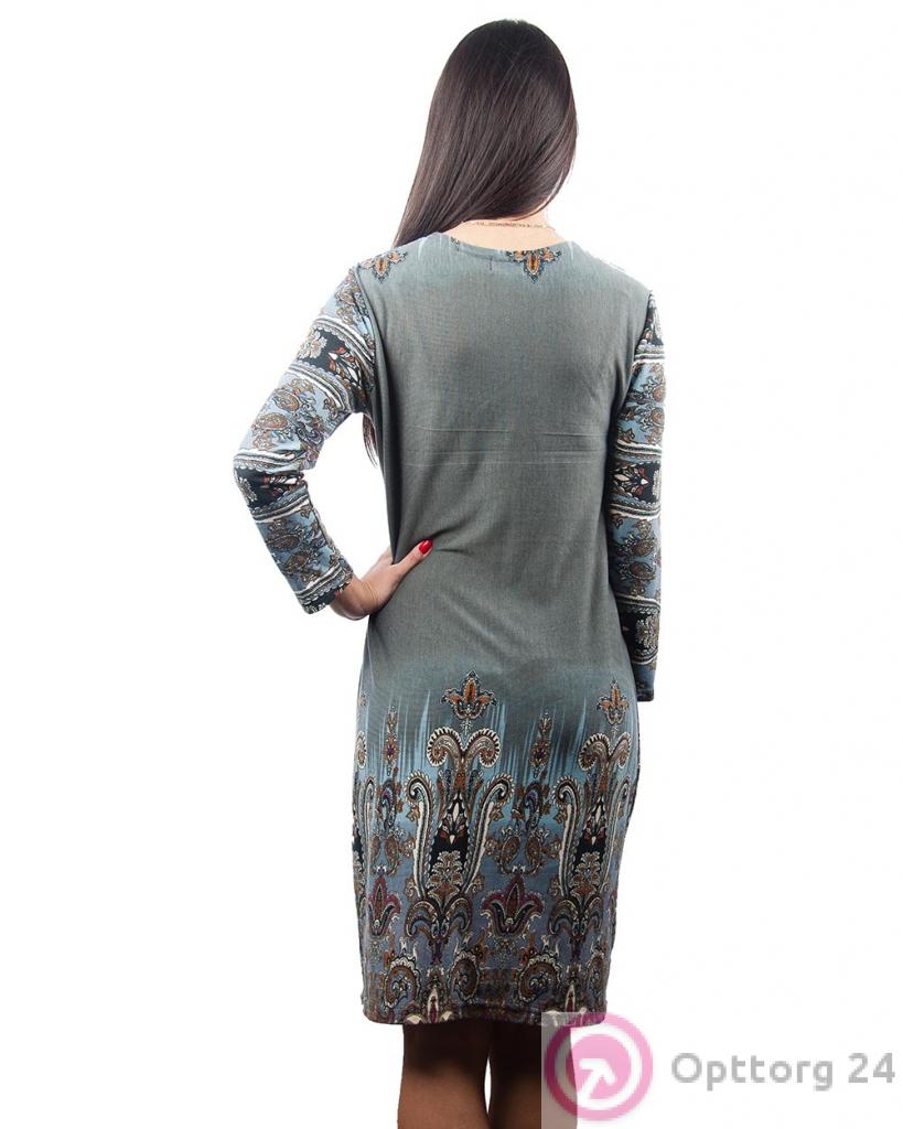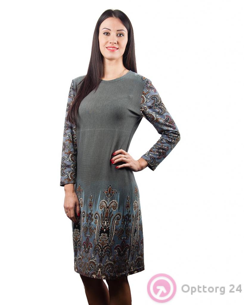 Платье женское серое с абстрактным принтом оптом