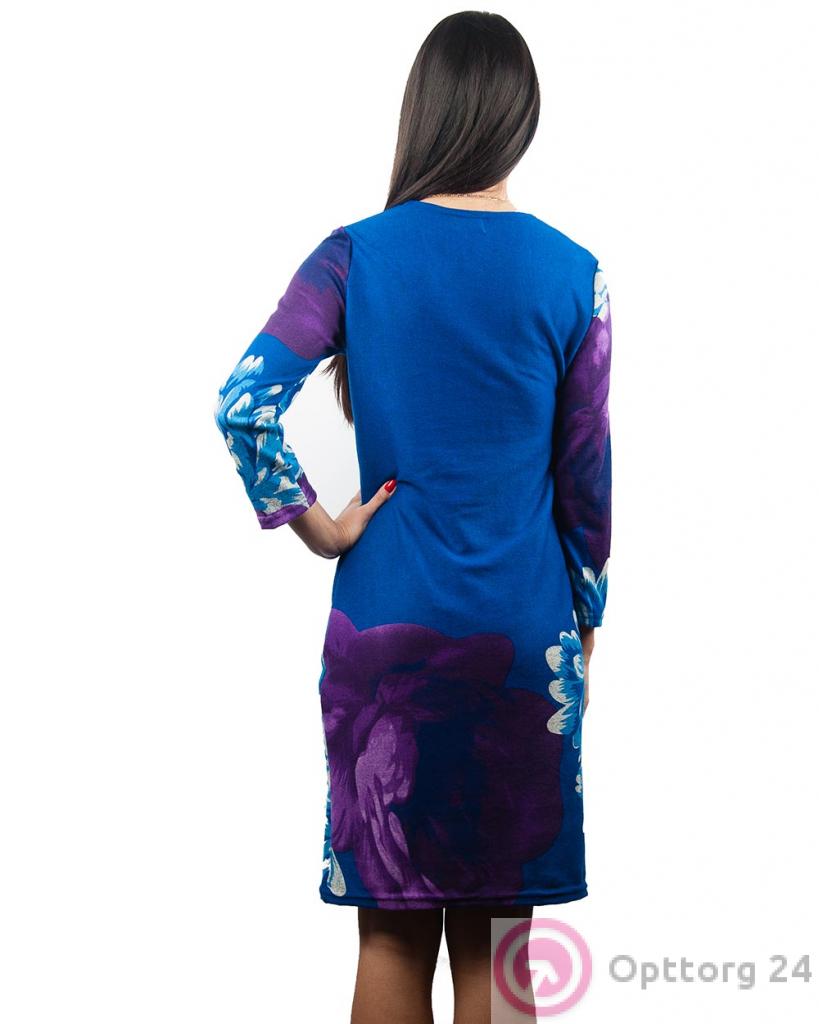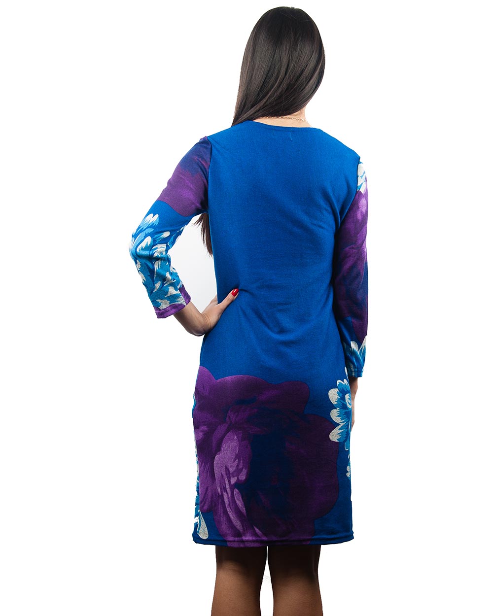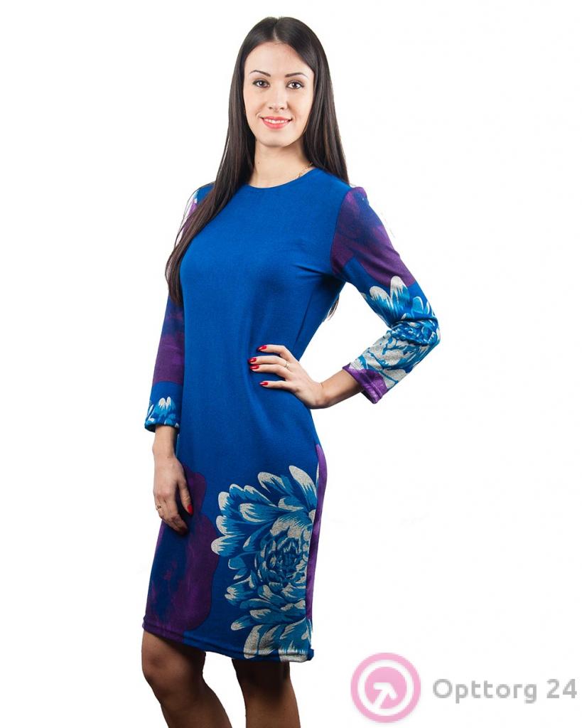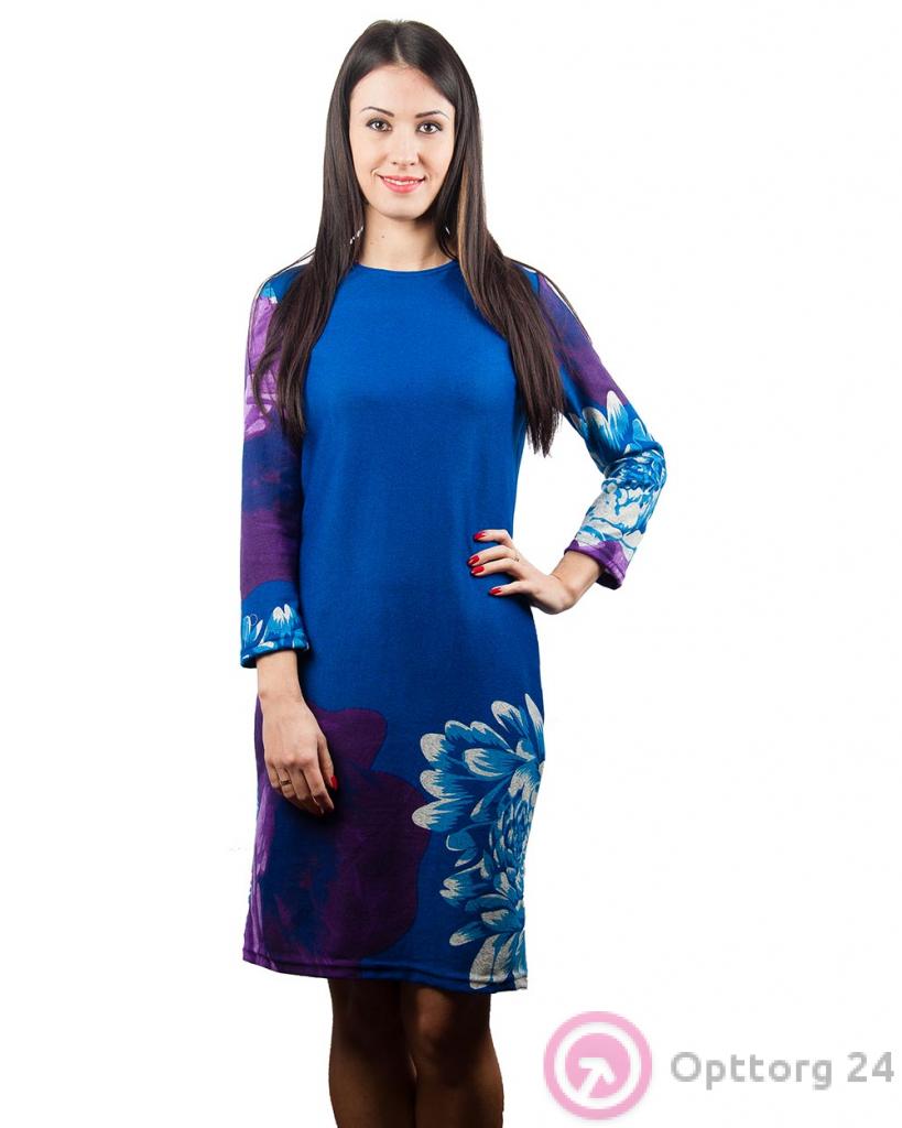 Это сочное очаровательное платье, оформленное крупными цветами, заставляет вспомнить об ароматах и свежести бескрайних васильковых полей. Простой фасон удачно подчеркнет любую фигуру.