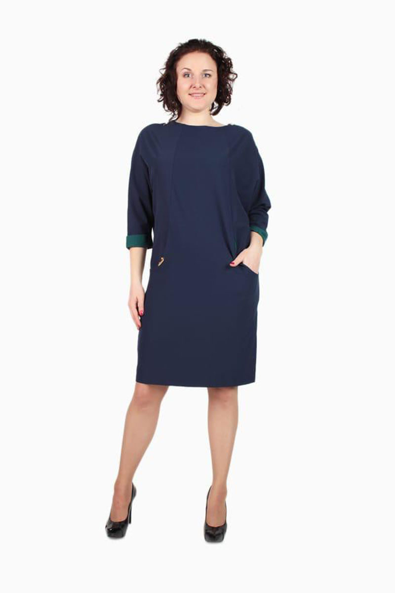 Описание: Свободное женское платье, темно-синего цвета. Есть карман. Округлая горловина. Рукав 3/4 с под воротом.