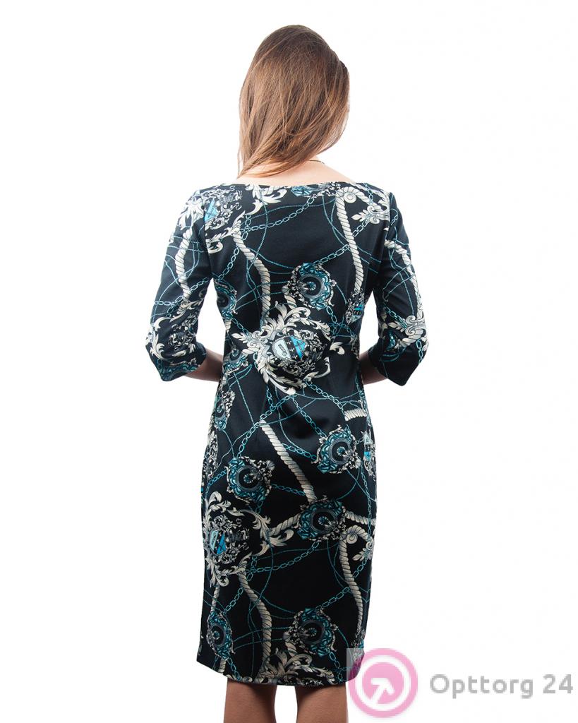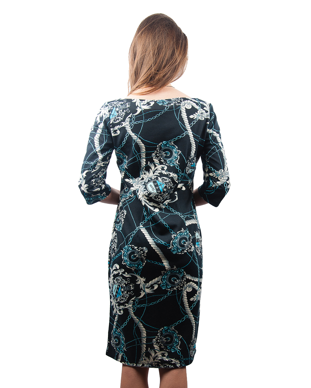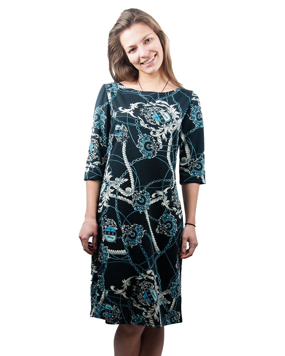 Элегантное темно-синее платье с актуальным узором. Прекрасный вариант как для выхода в свет, так и для повседневного гардероба.
