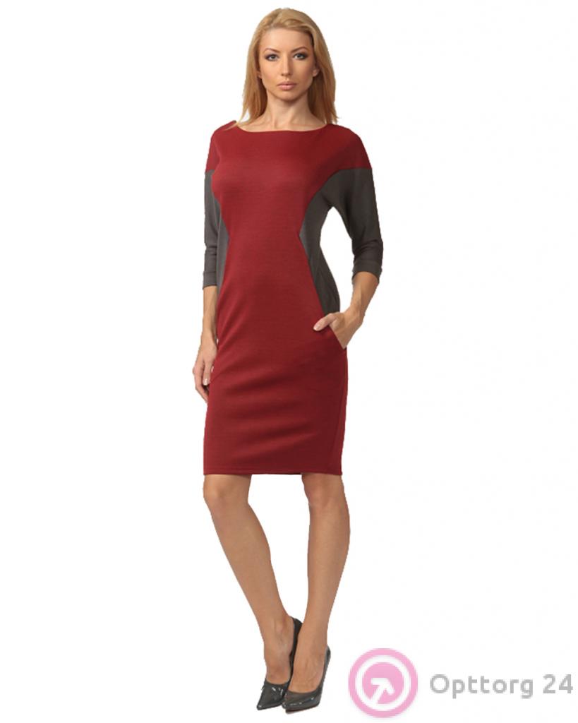 Платье женское трикотажное бордовое с серыми вставками оптом
