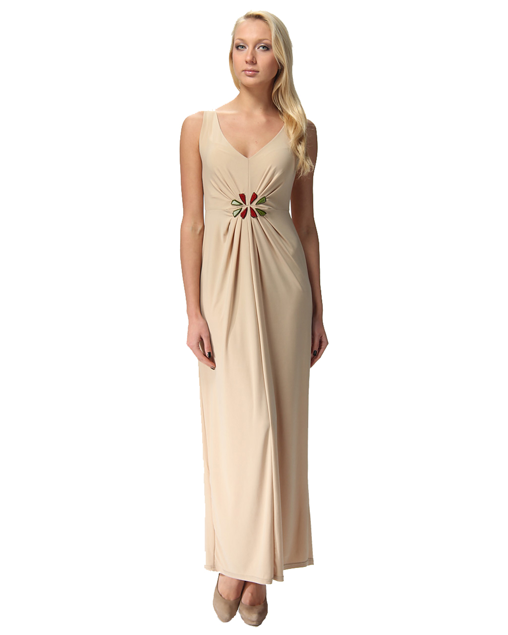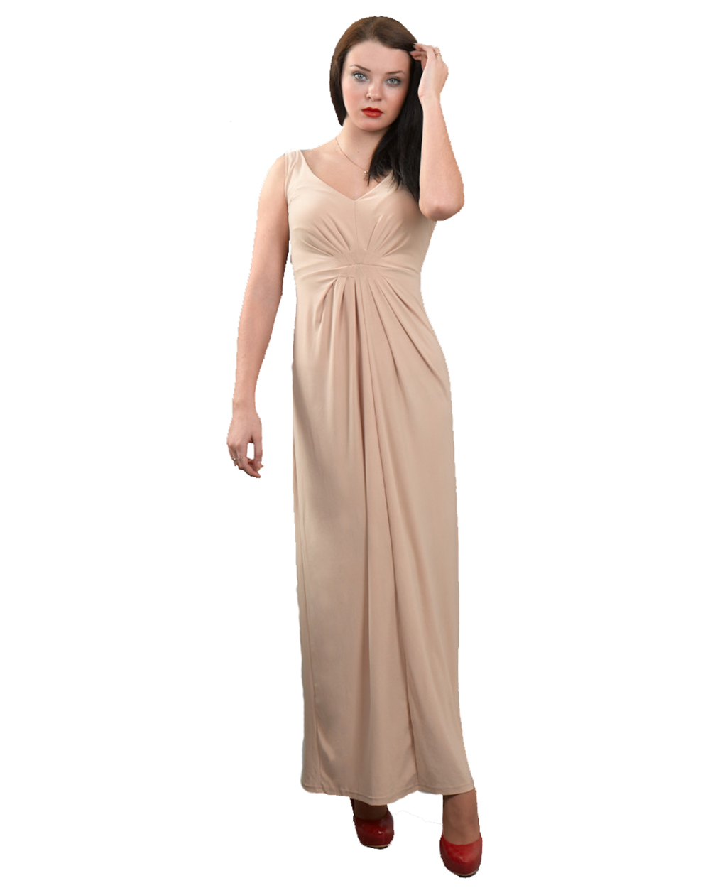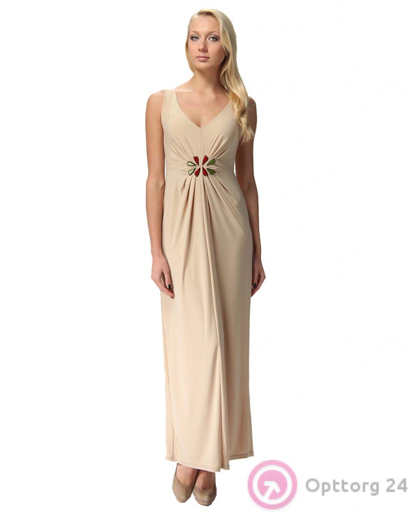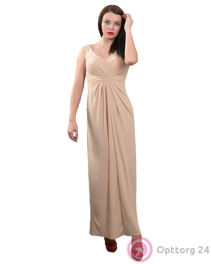 Платье женское вечернее бежевое в пол с защипами оптом