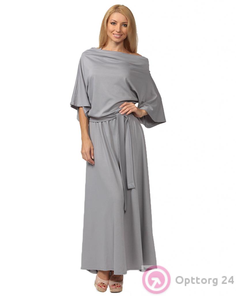 Платье женское вечернее серое в пол с поясом оптом