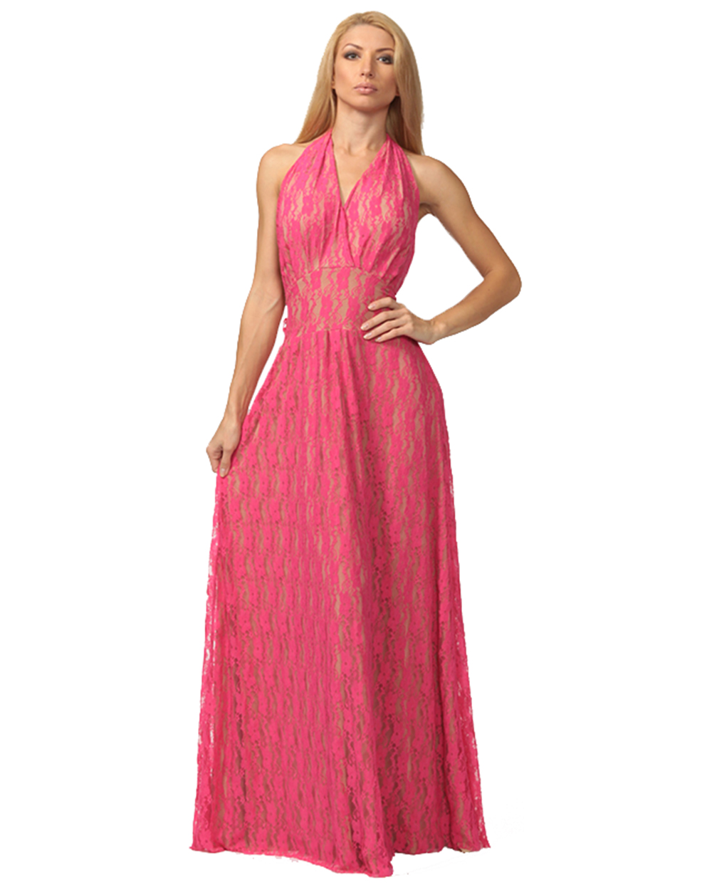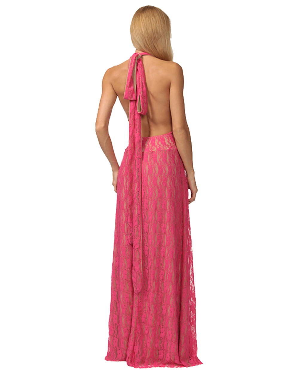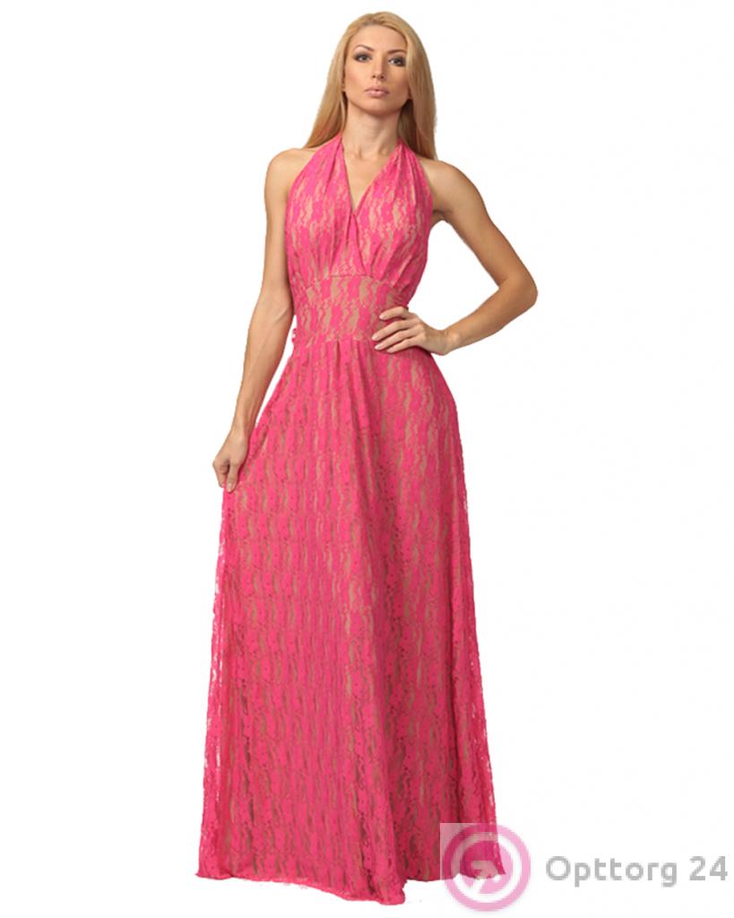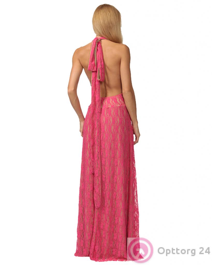 Платье женское вечернее в пол розовое кружевное с открытой спиной оптом