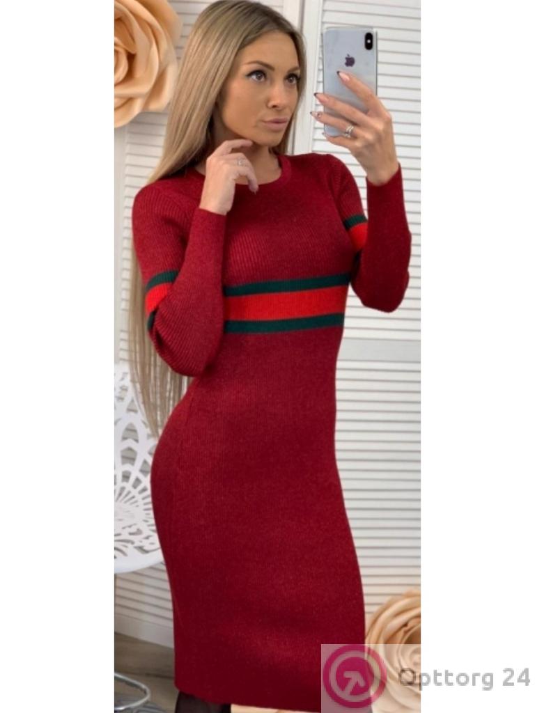 Платье женское вязаное красного цвета оптом