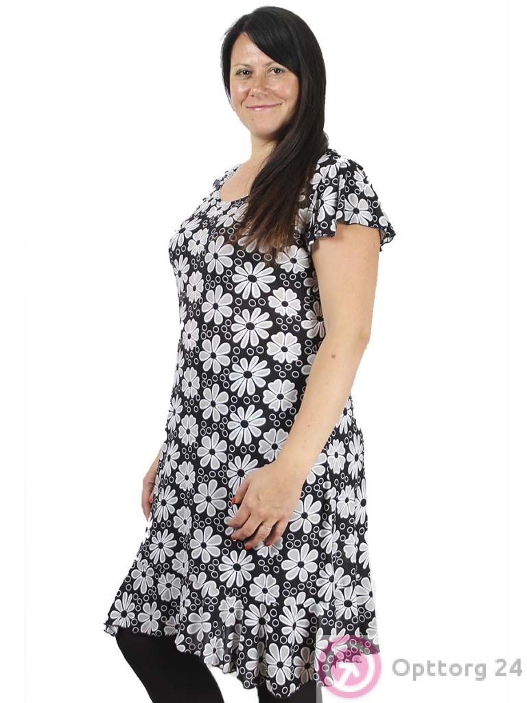 Платье женское юольшие размеры черно-белого цвета с рисунком. оптом
