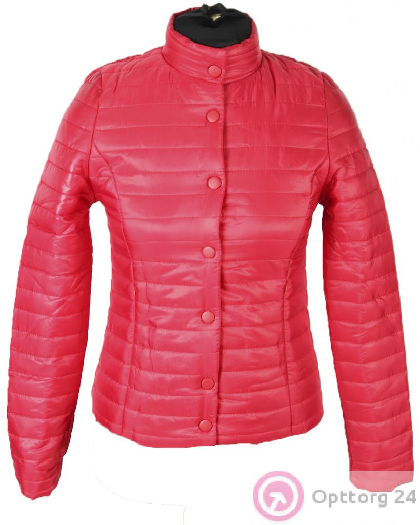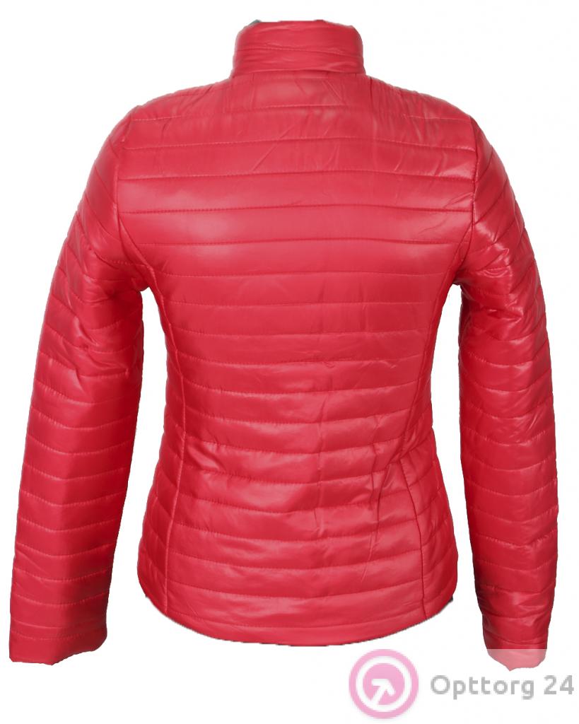 Подростковая стёганная куртка красного цвета на молнии и кнопках. оптом