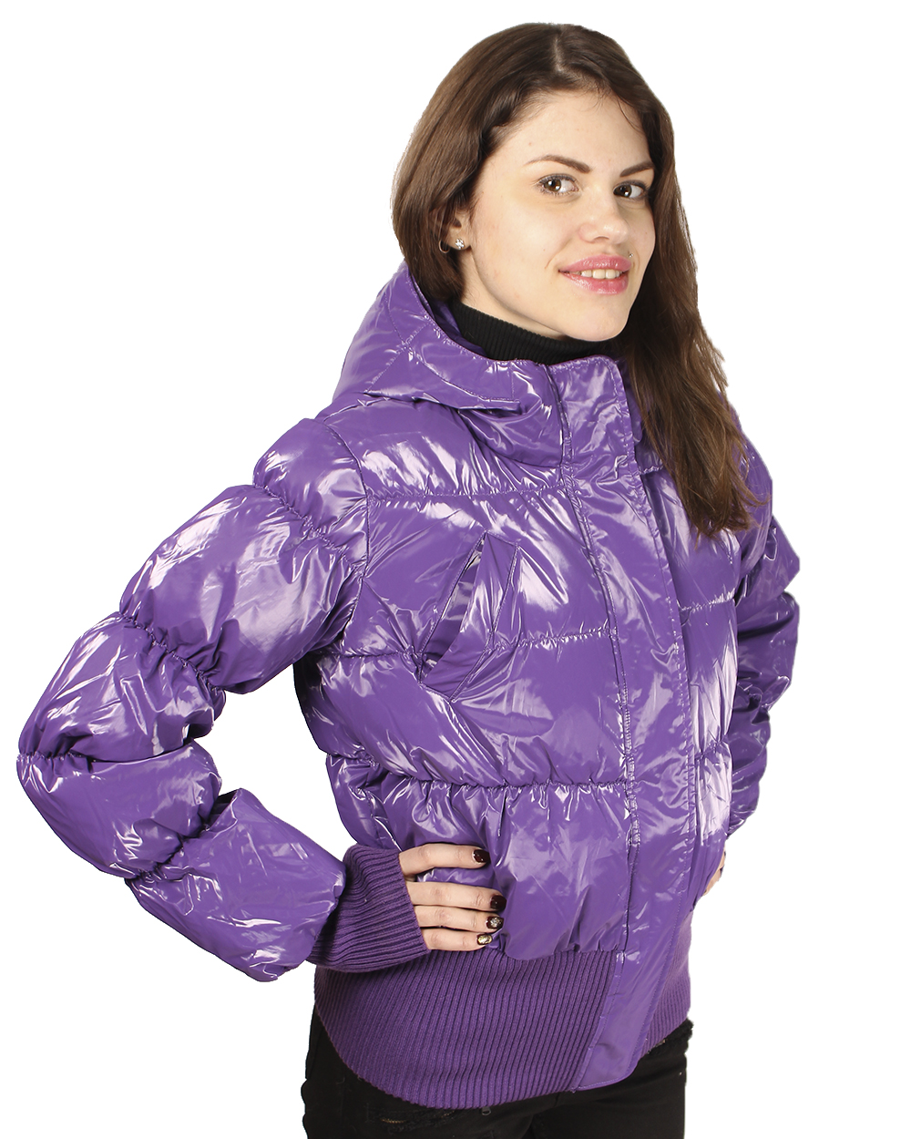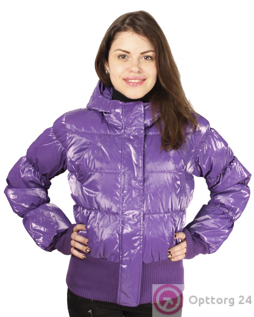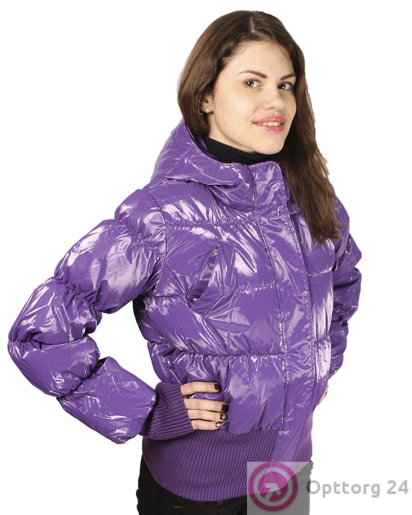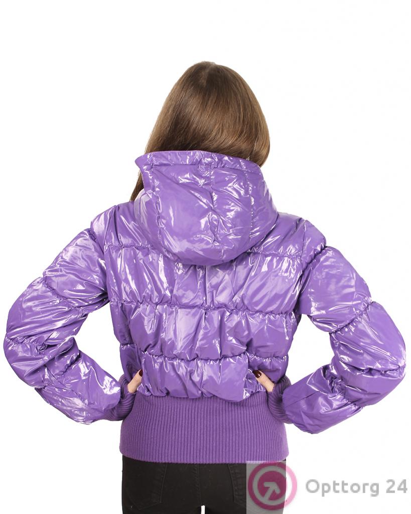 Подростковая куртка для девочек. Укороченная модель фиолетового, глянцевого цвета.
