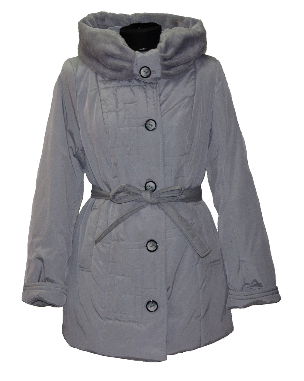 Полупальто женское с воротником и тонким поясом серое оптом